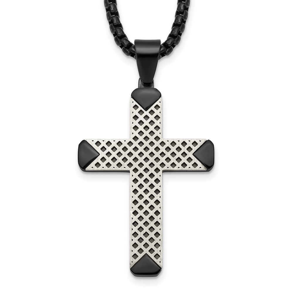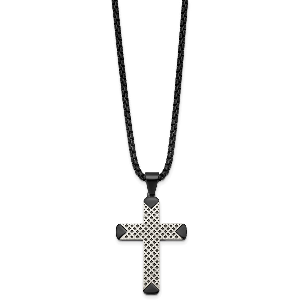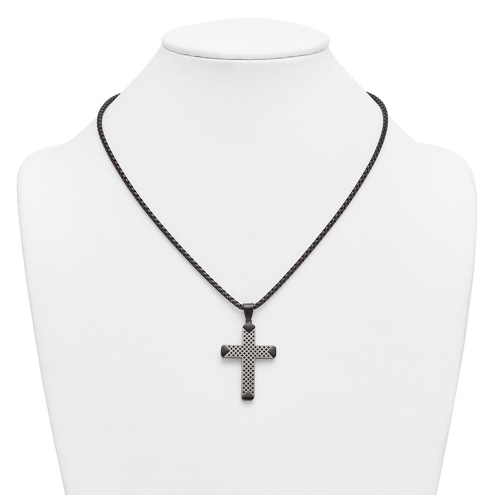 Stainless Steel Brushed and Polished Black IP-plated Cross 20in Necklace