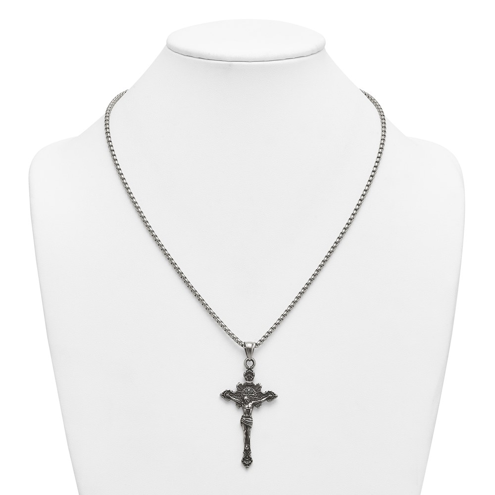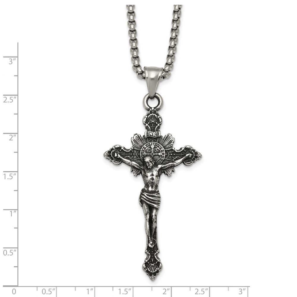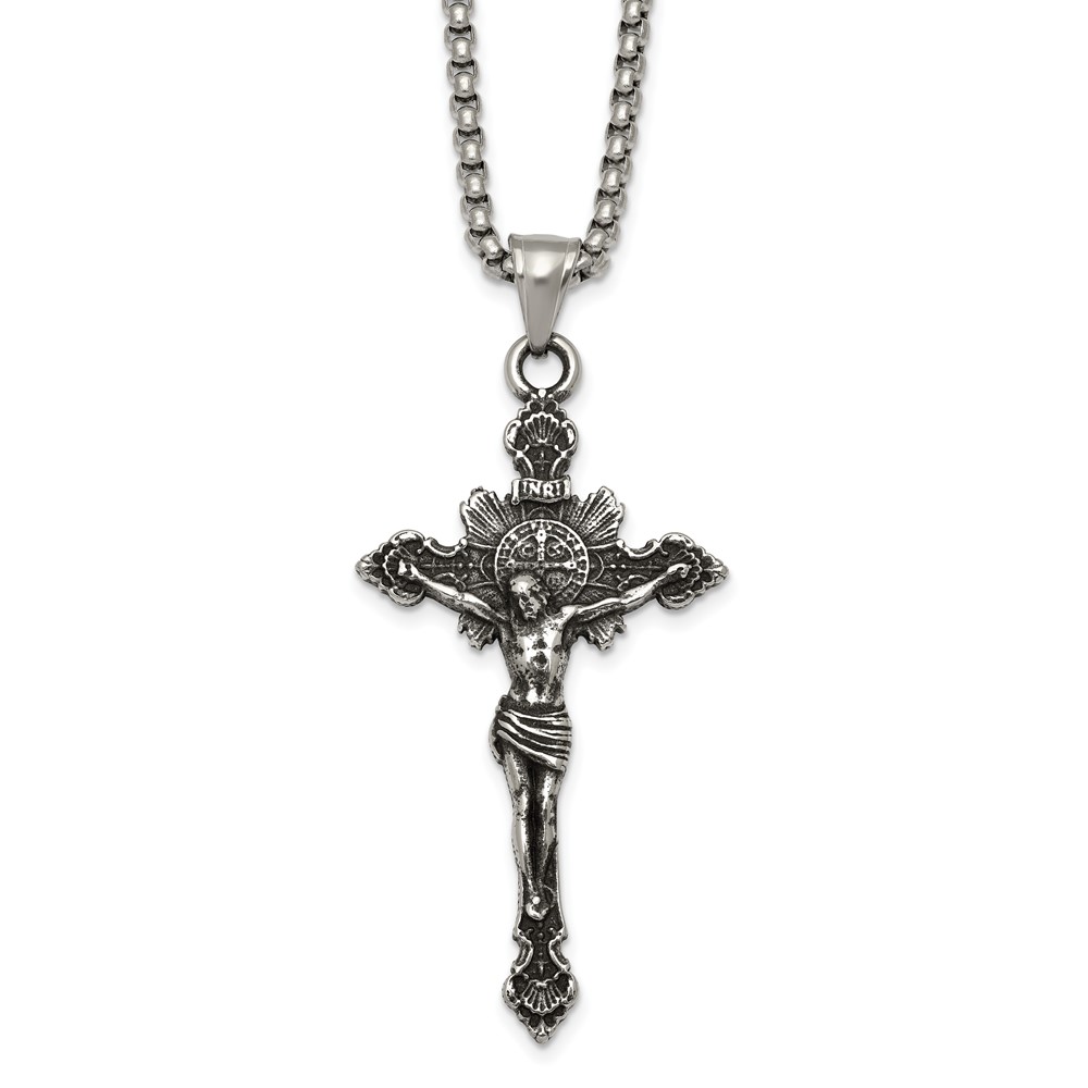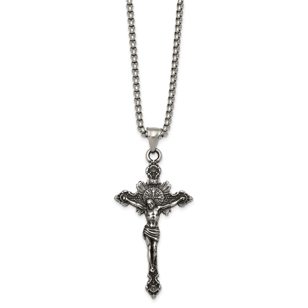 Stainless Steel Antiqued and Polished INRI Crucifix 22in Necklace