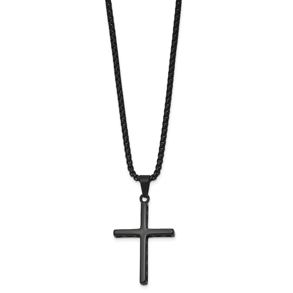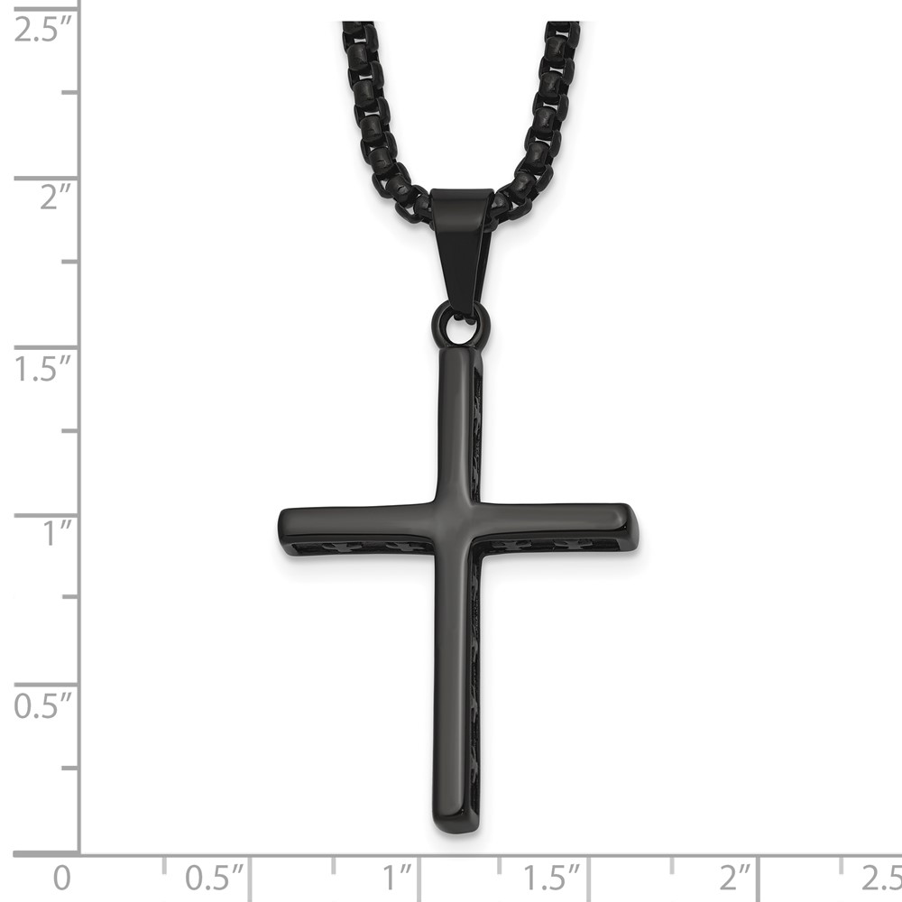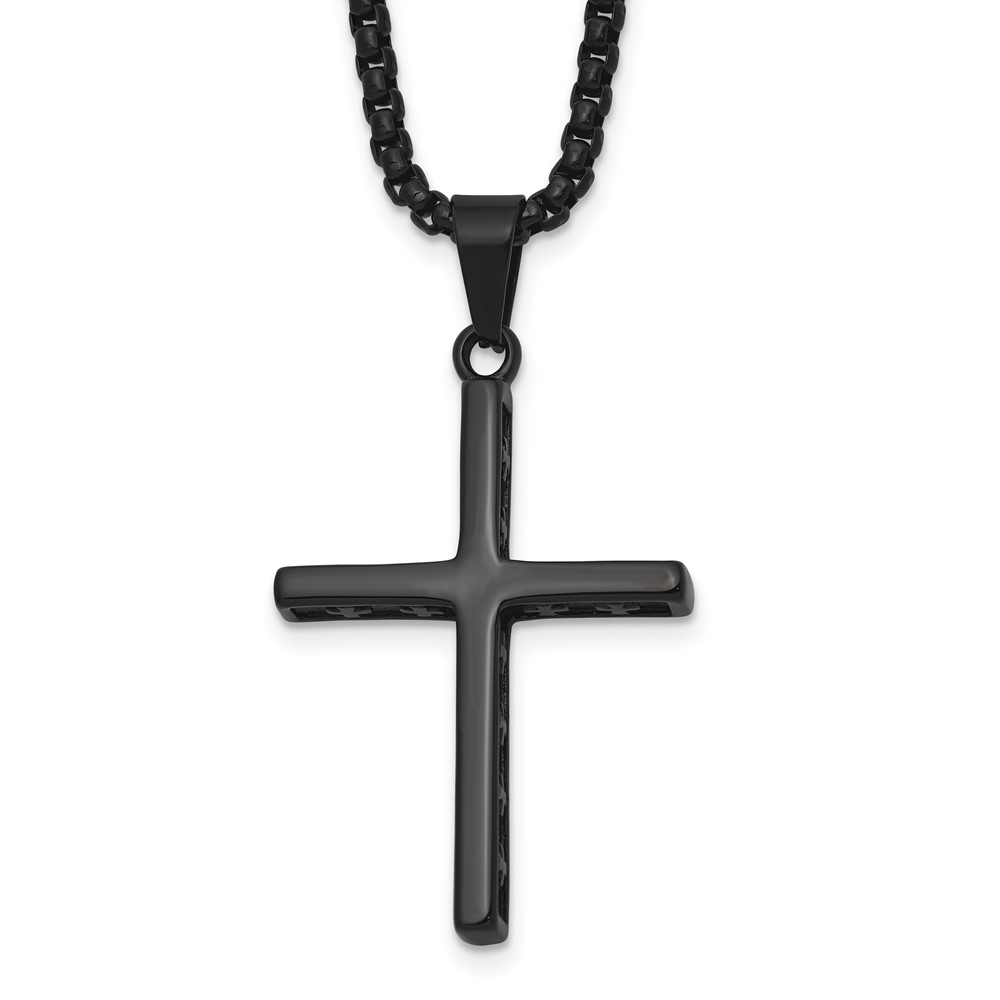 Stainless Steel Polished Black IP Cross w/Cross Design on Sides Necklace