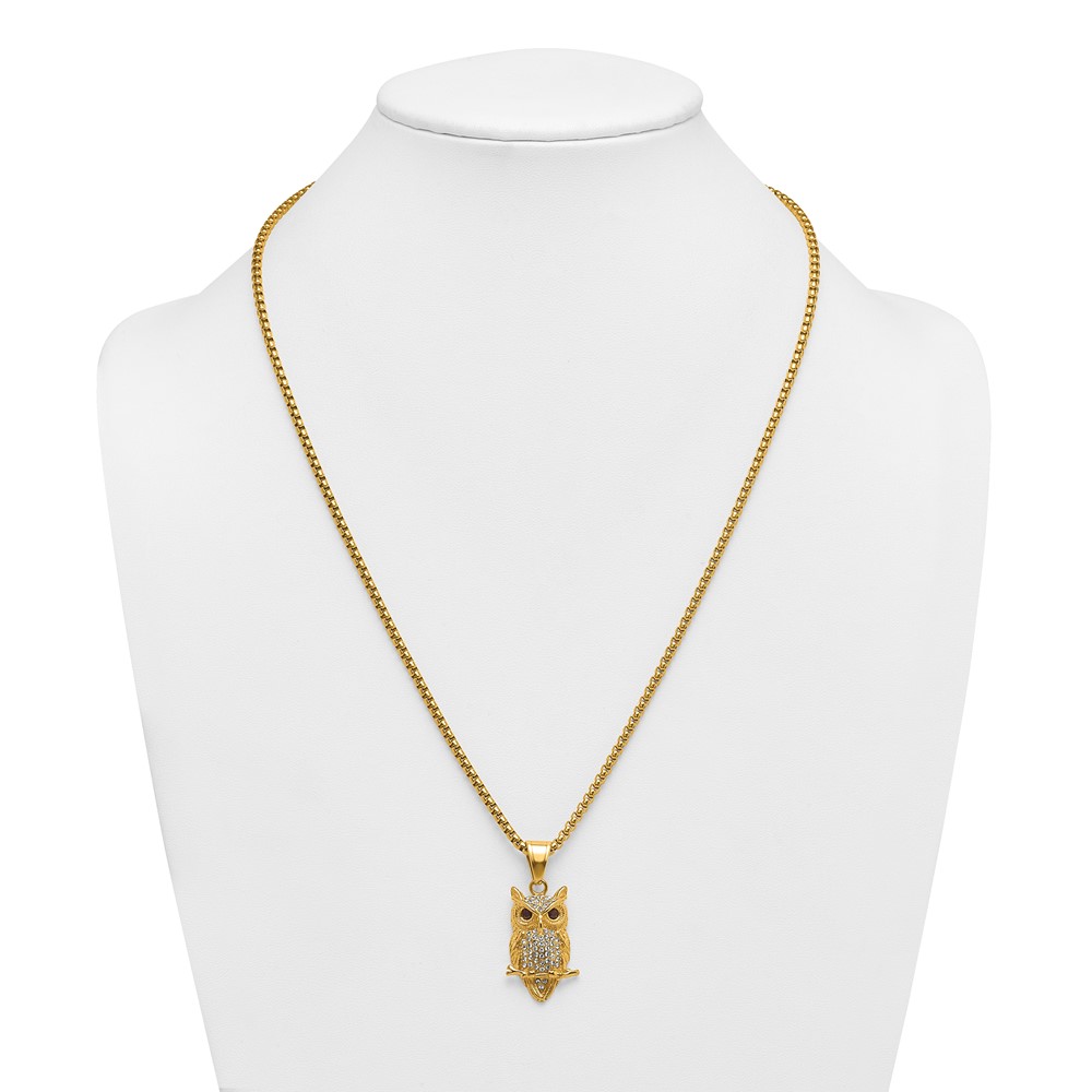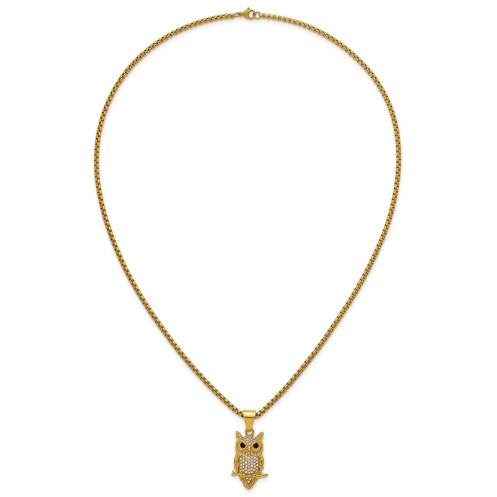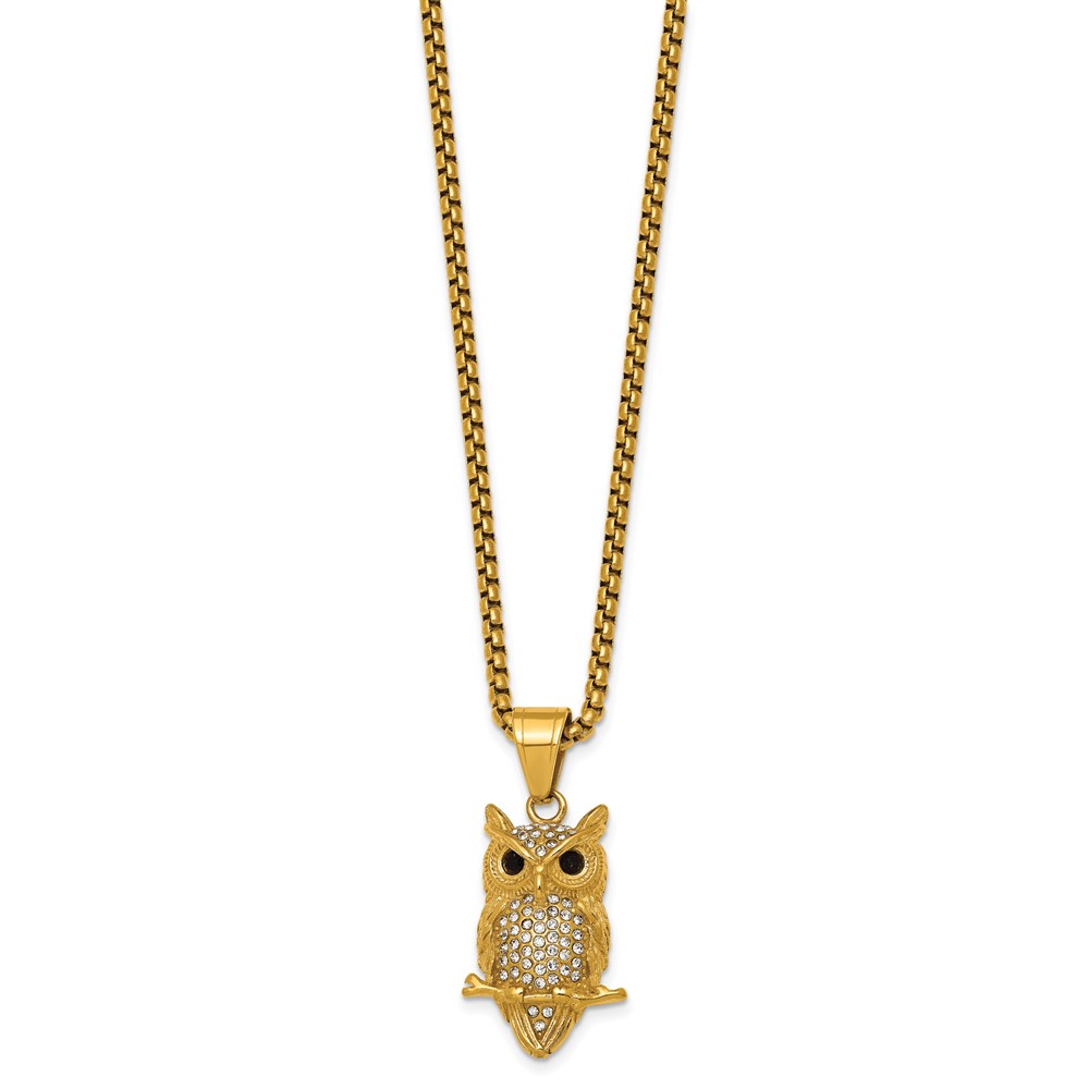 Stainless Steel Polished Yellow IP-plated Crystal Owl 24in Necklace