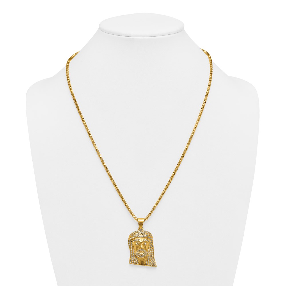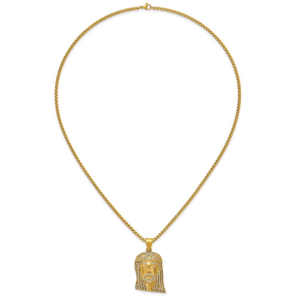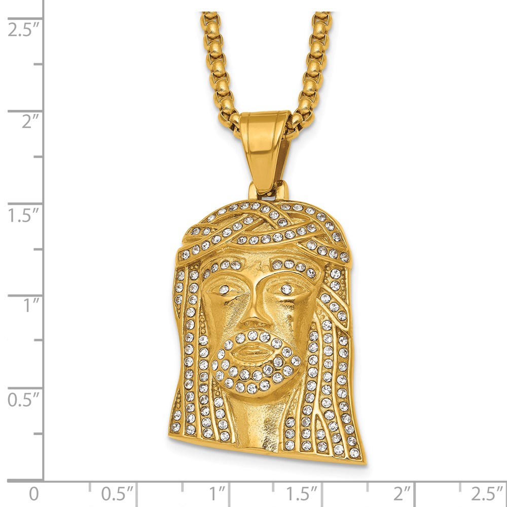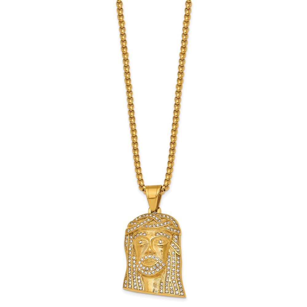 Stainless Steel Polished Yellow IP-plated Crystal Jesus 24in Necklace