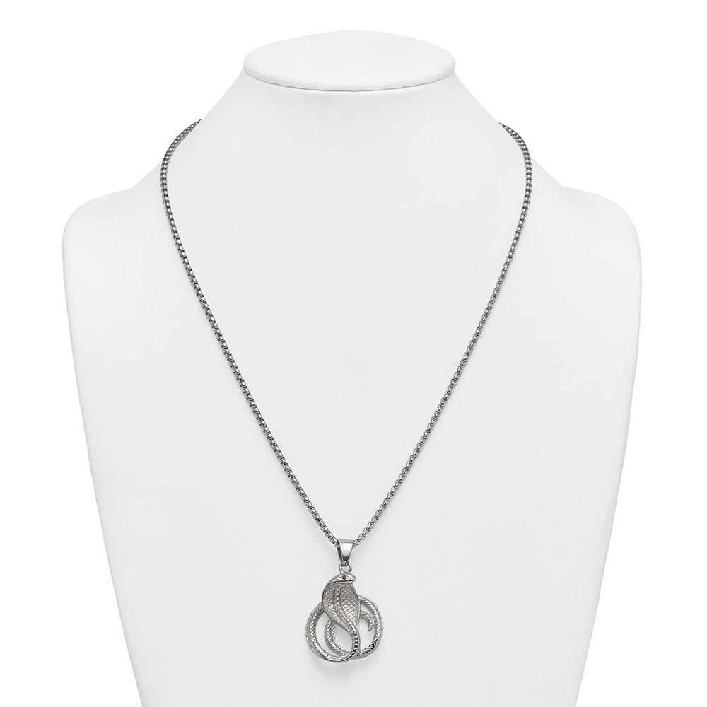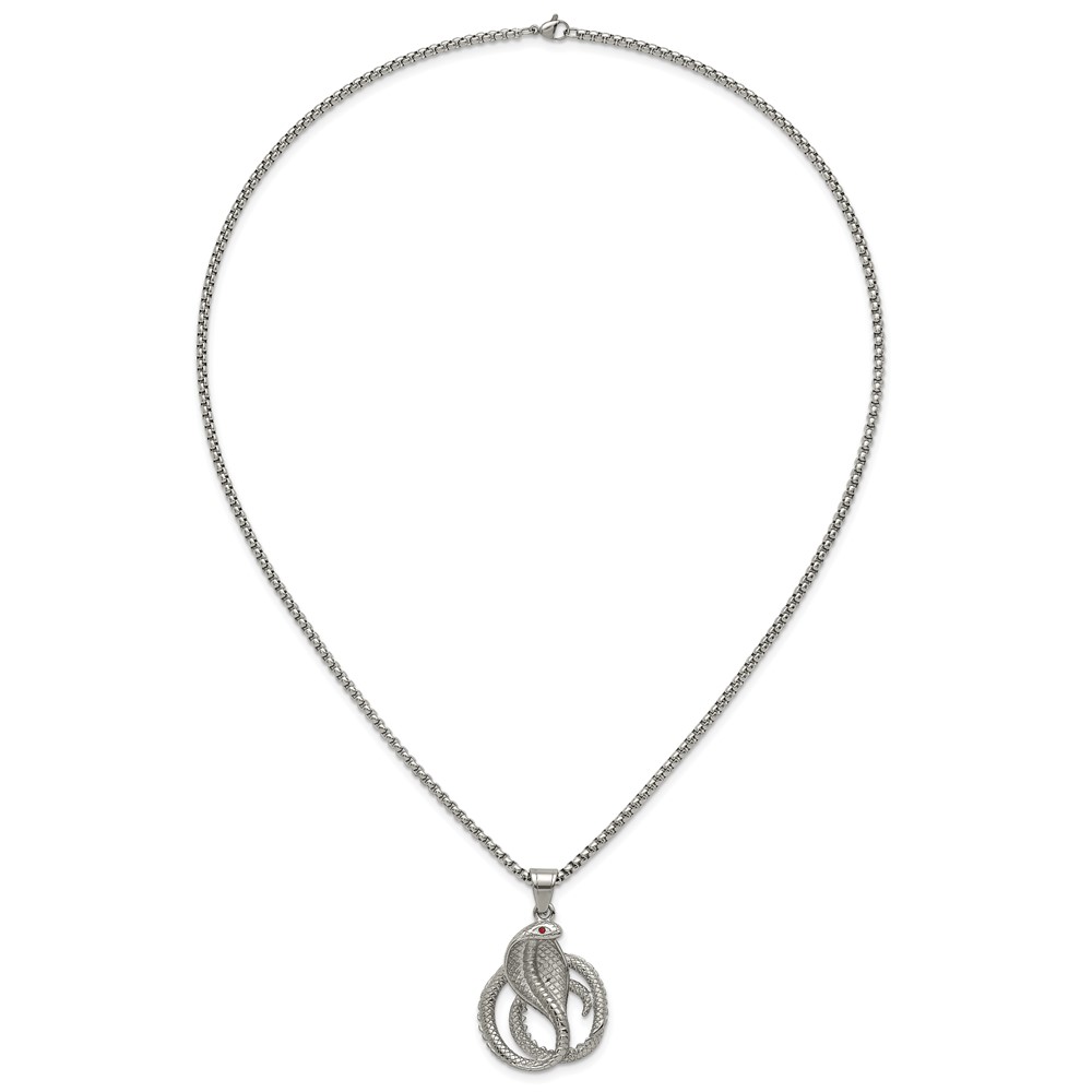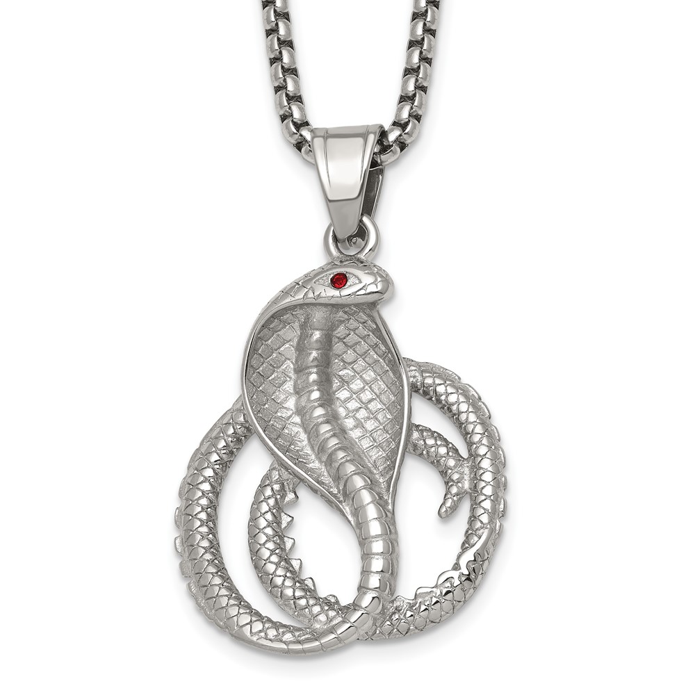 Stainless Steel Polished Red Crystal Eyed Snake 24in Necklace