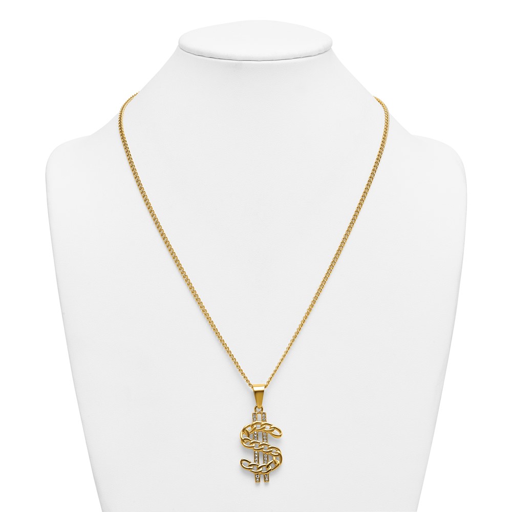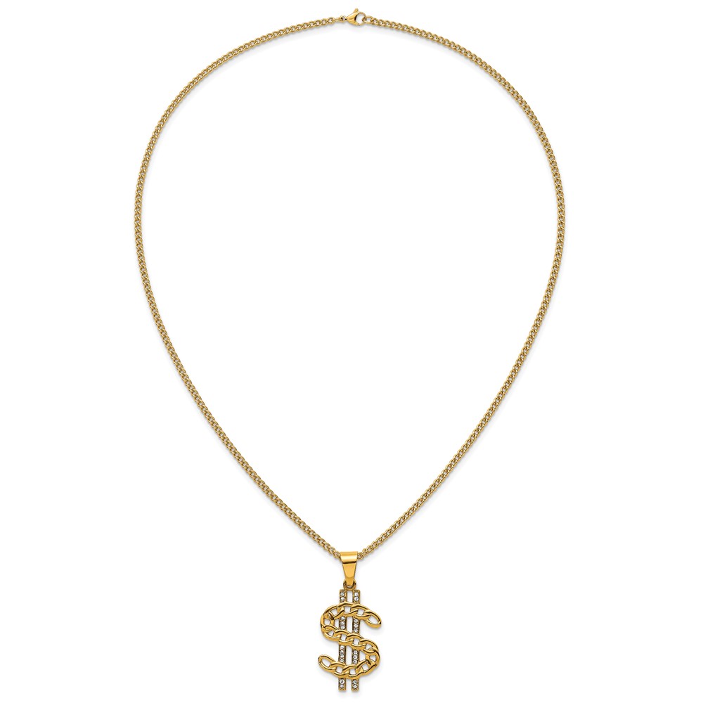 Stainless Steel Polished Yellow IP Crystal Dollar Sign 24in Necklace