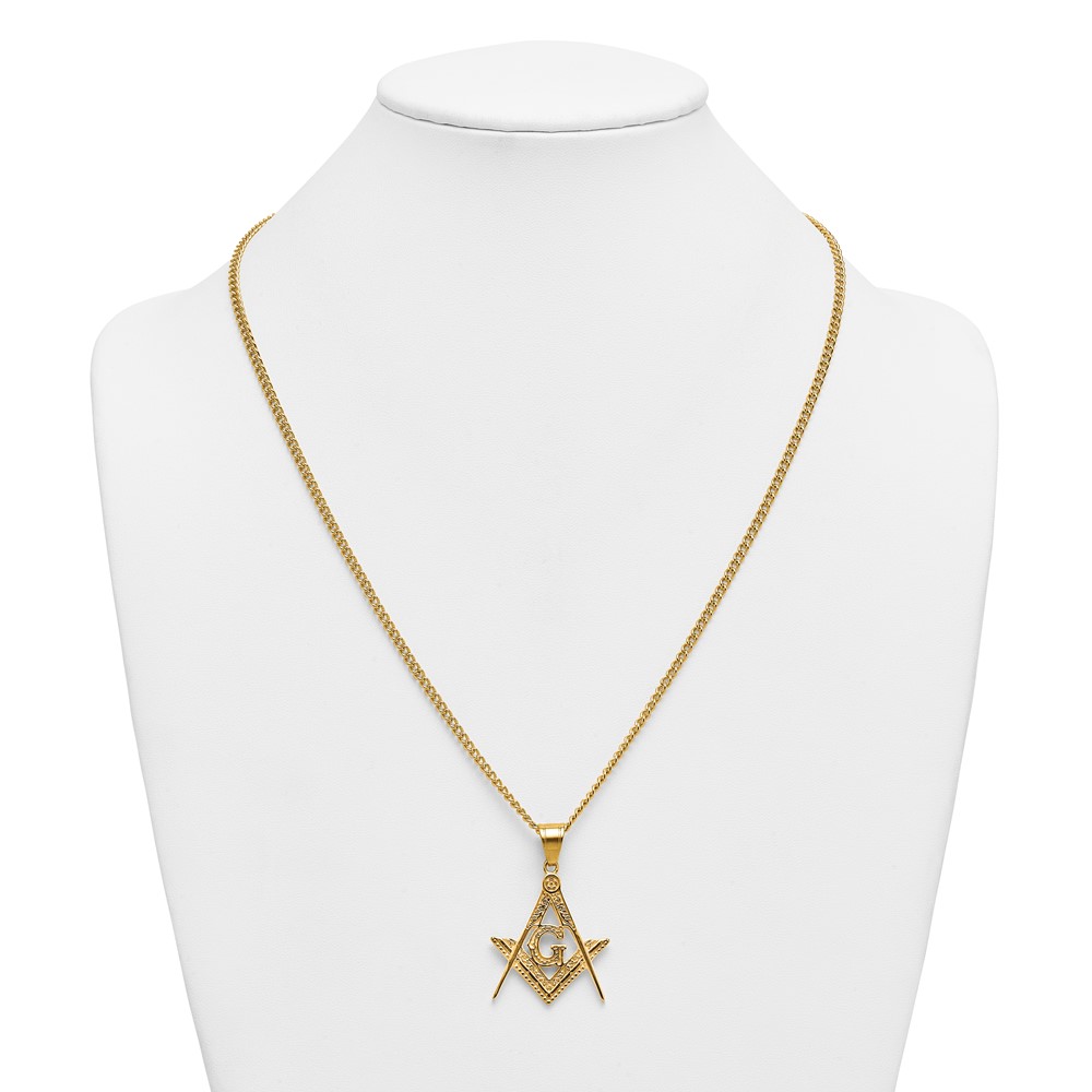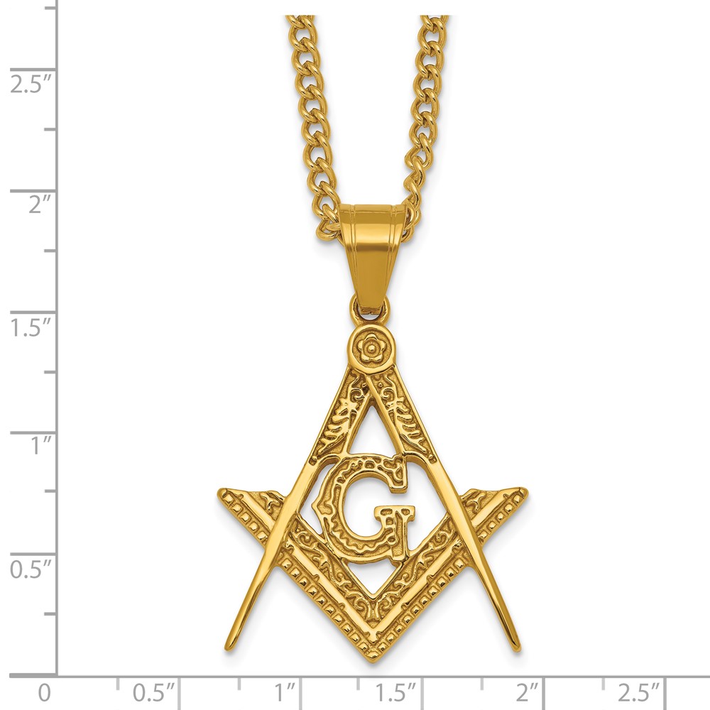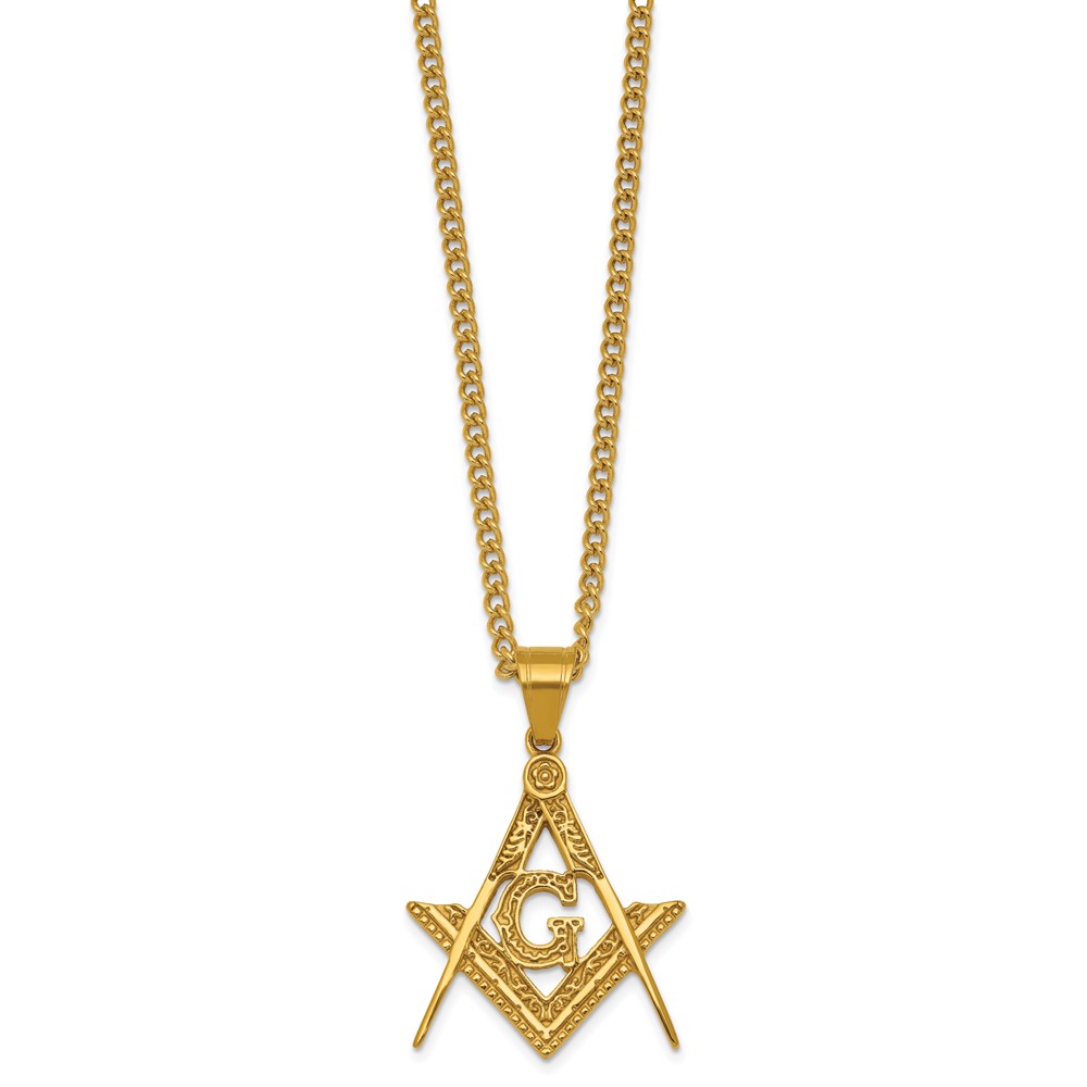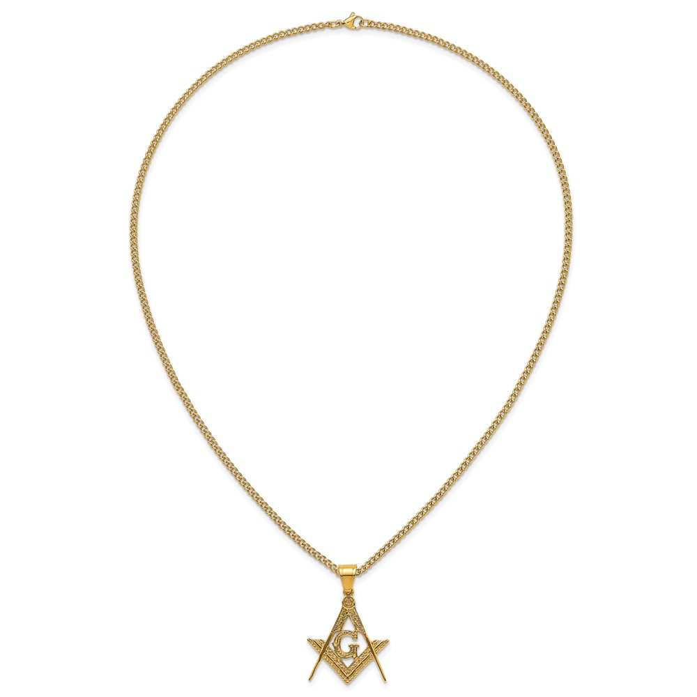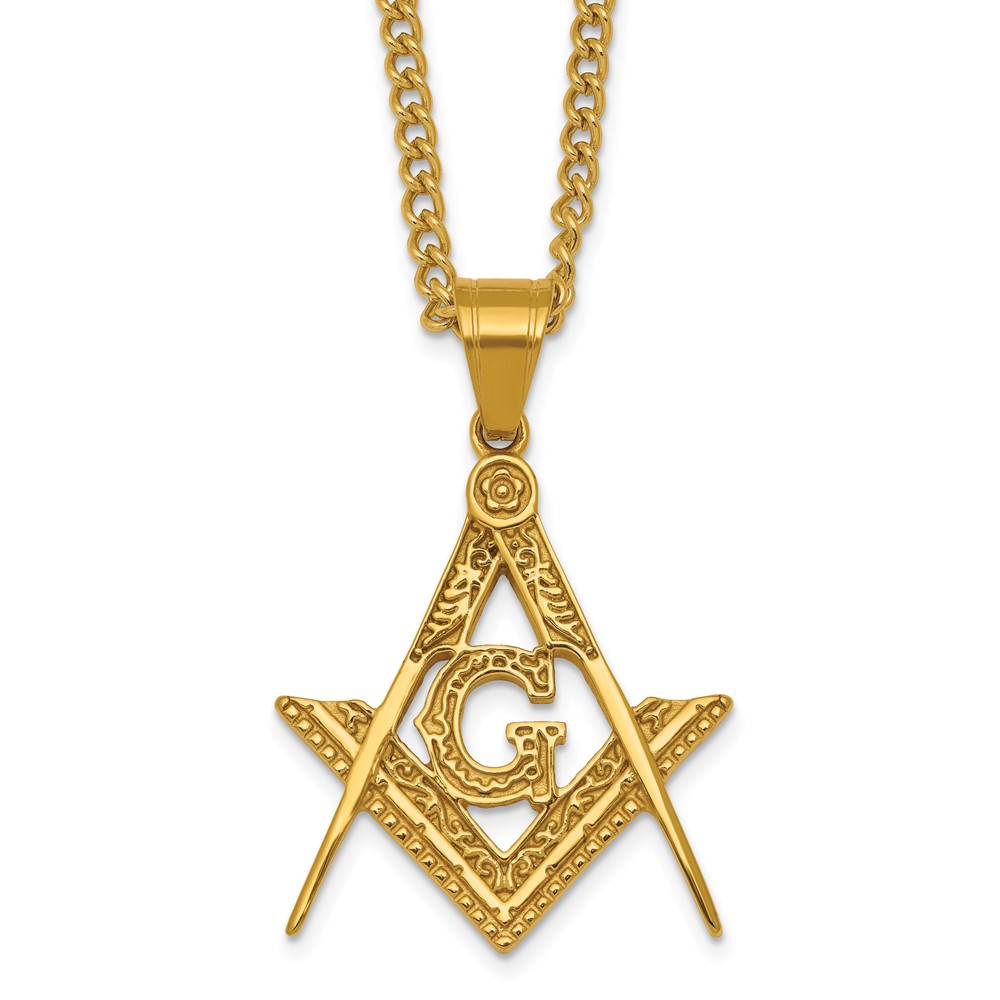 Stainless Steel Polished Yellow IP Masonic Symbol 24in Necklace