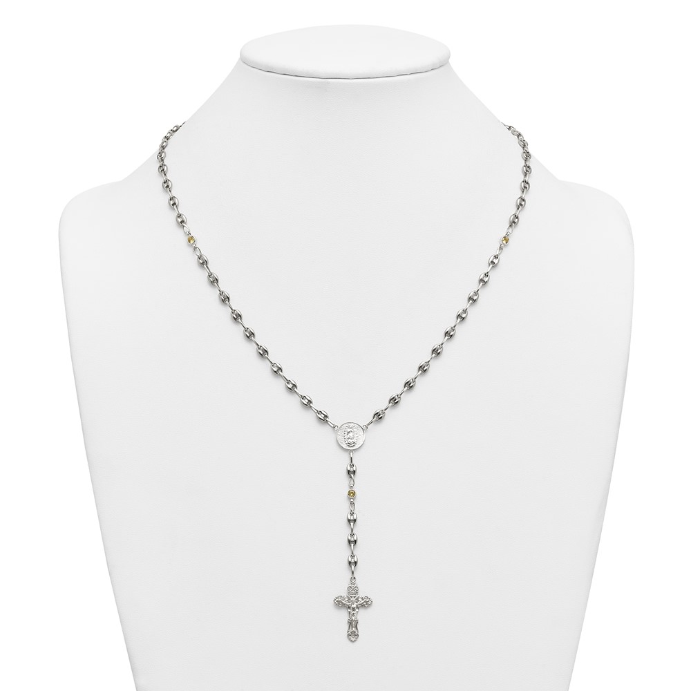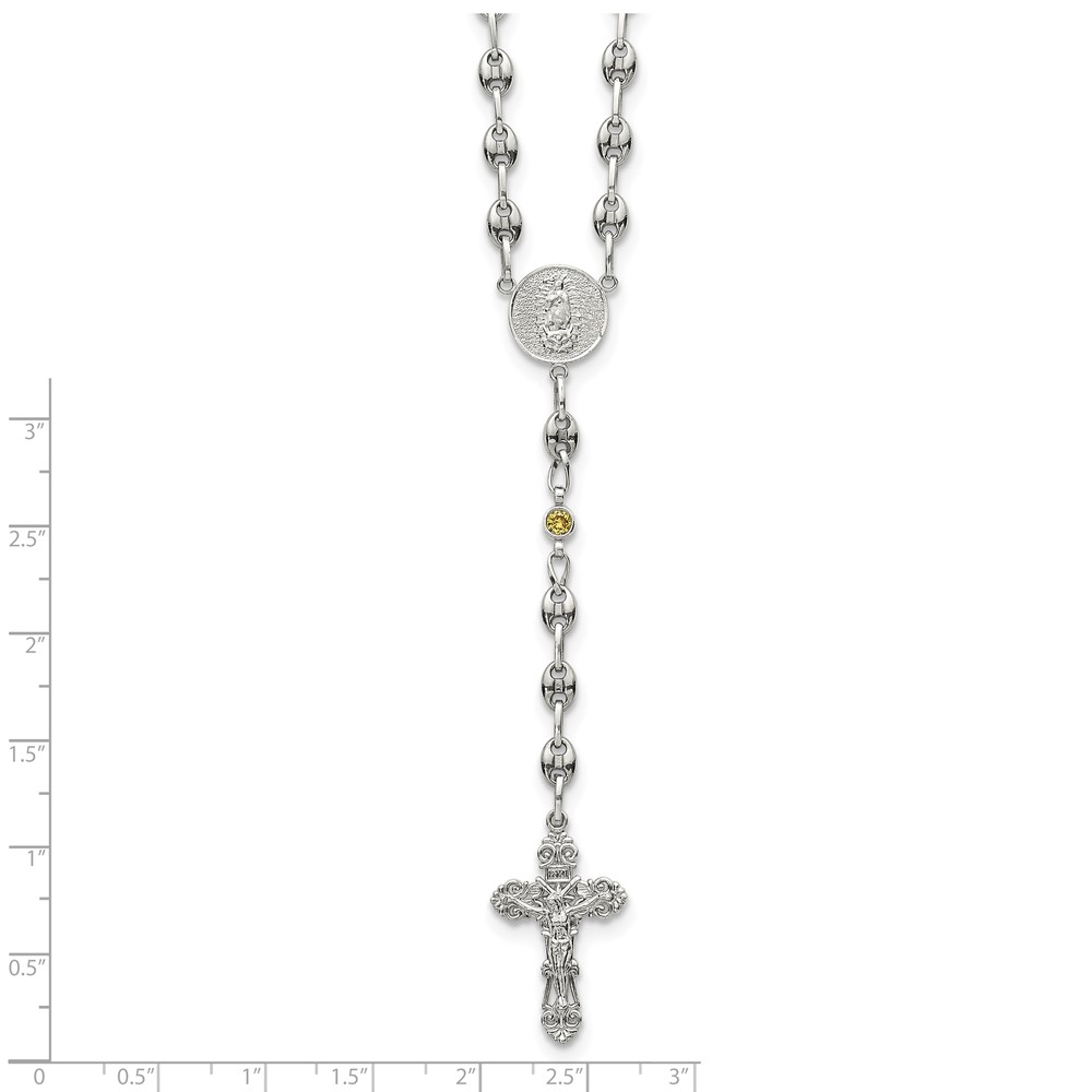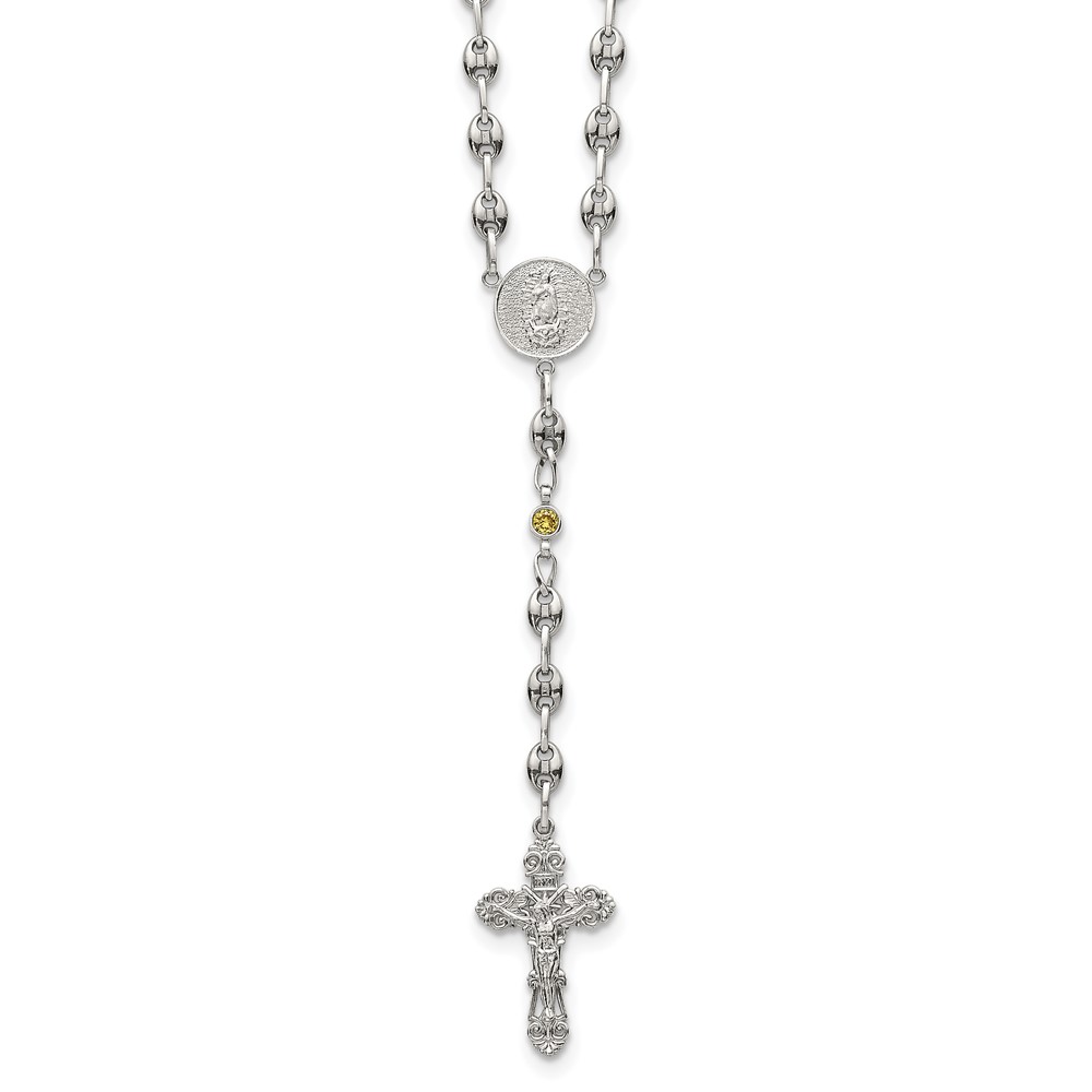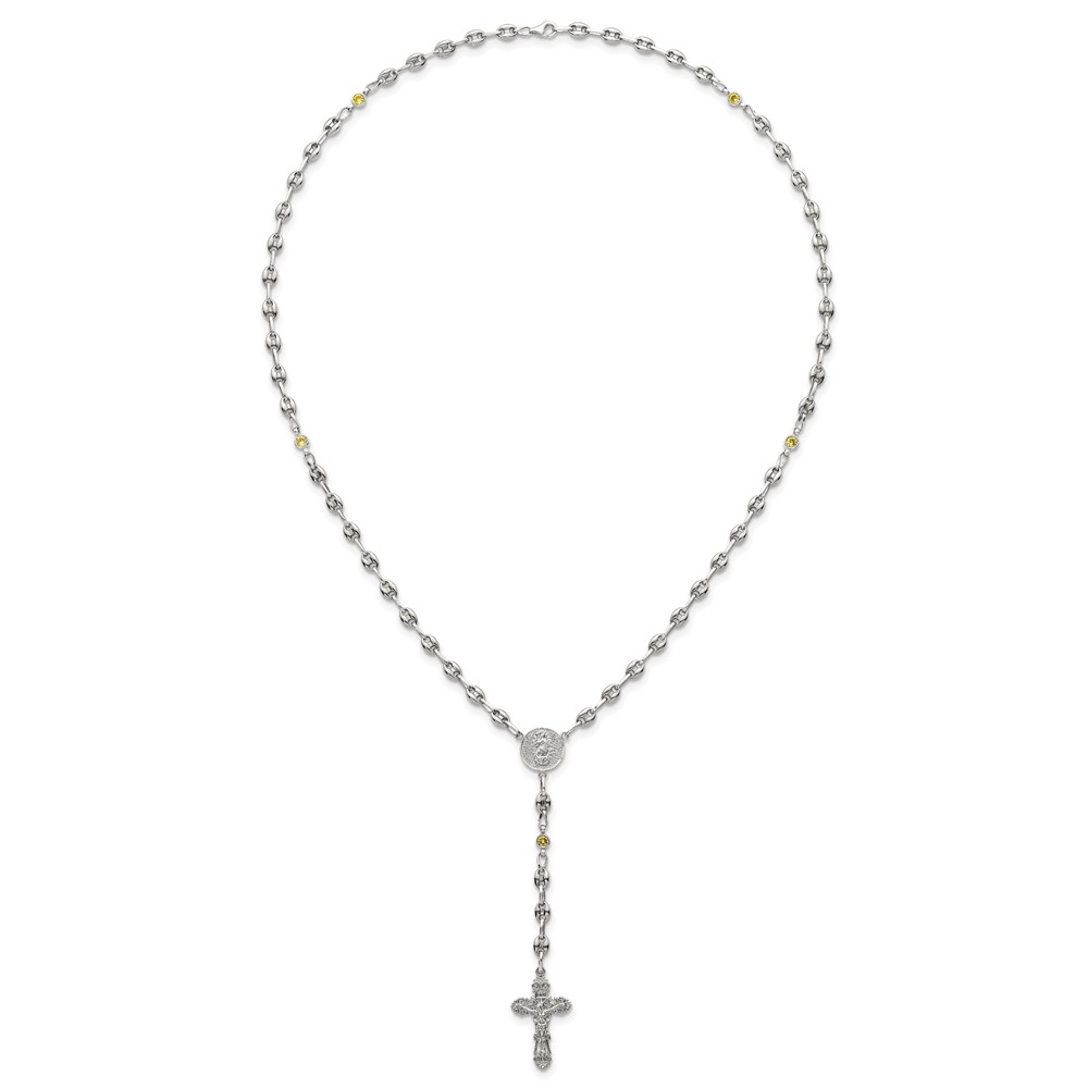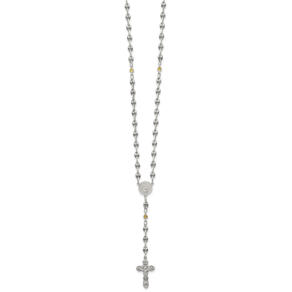 Stainless Steel with 925 Polished Yellow CZ 21in Rosary Necklace