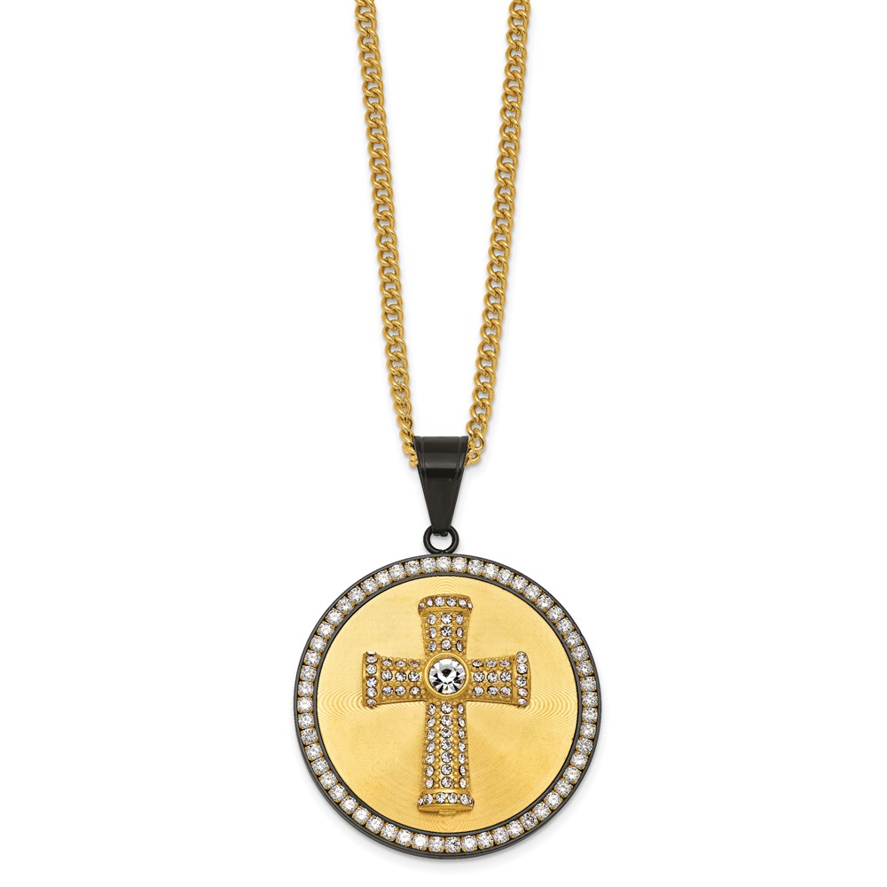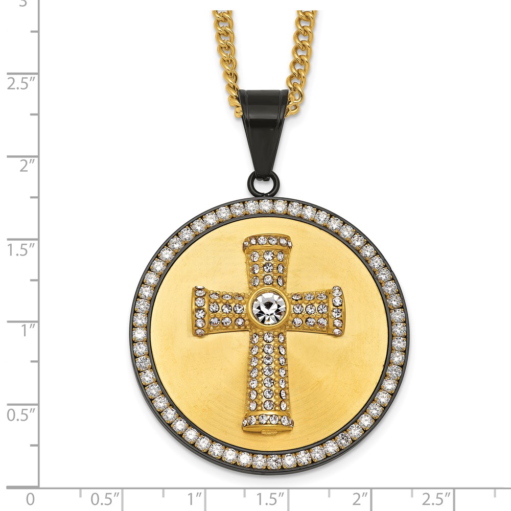Stainless Steel Polished Yellow IP-plated Crystal Cross 24in Necklace