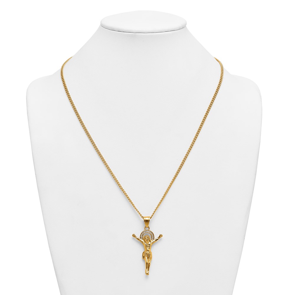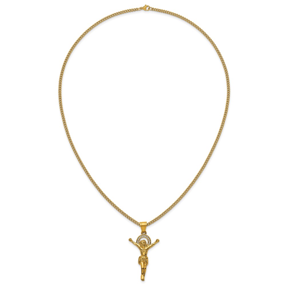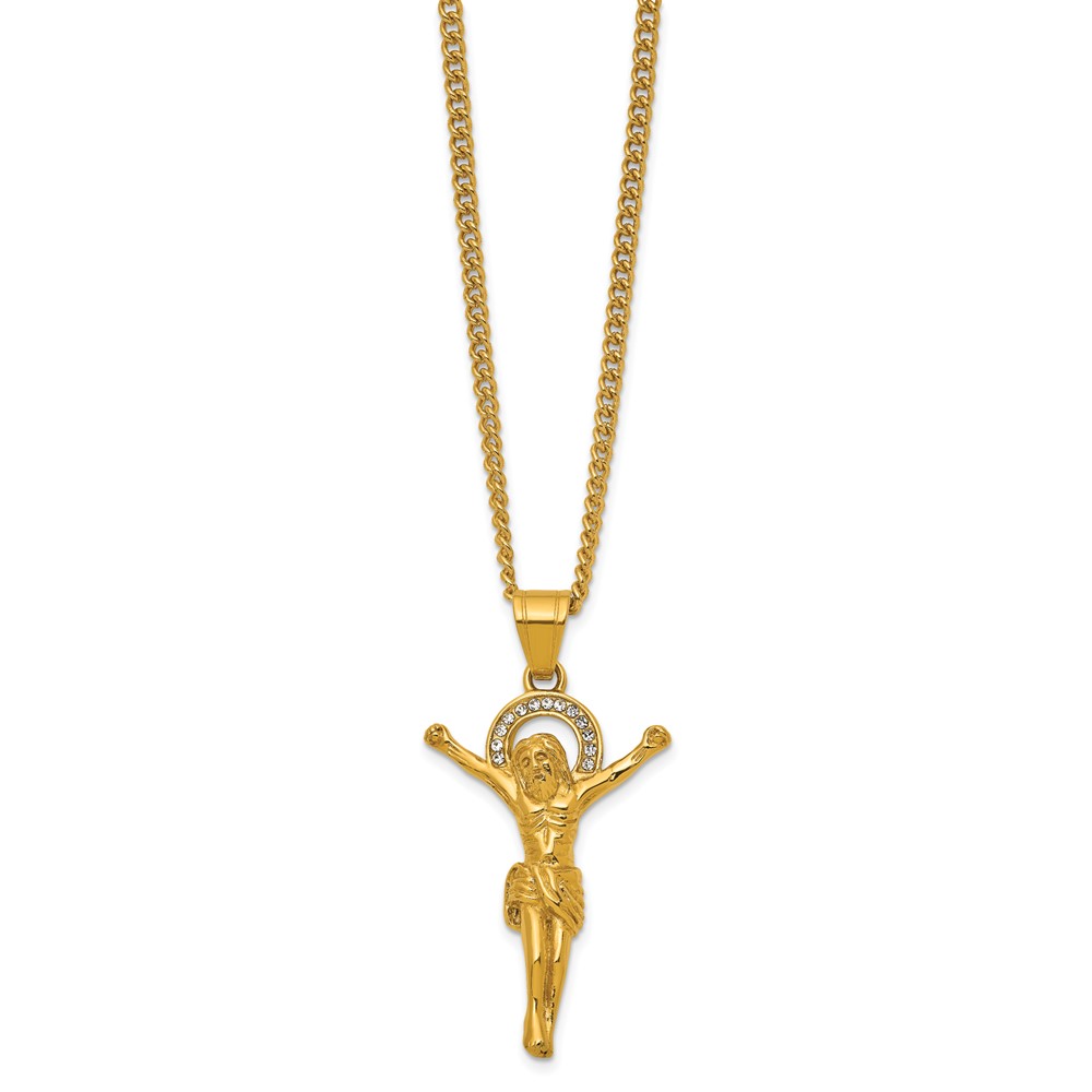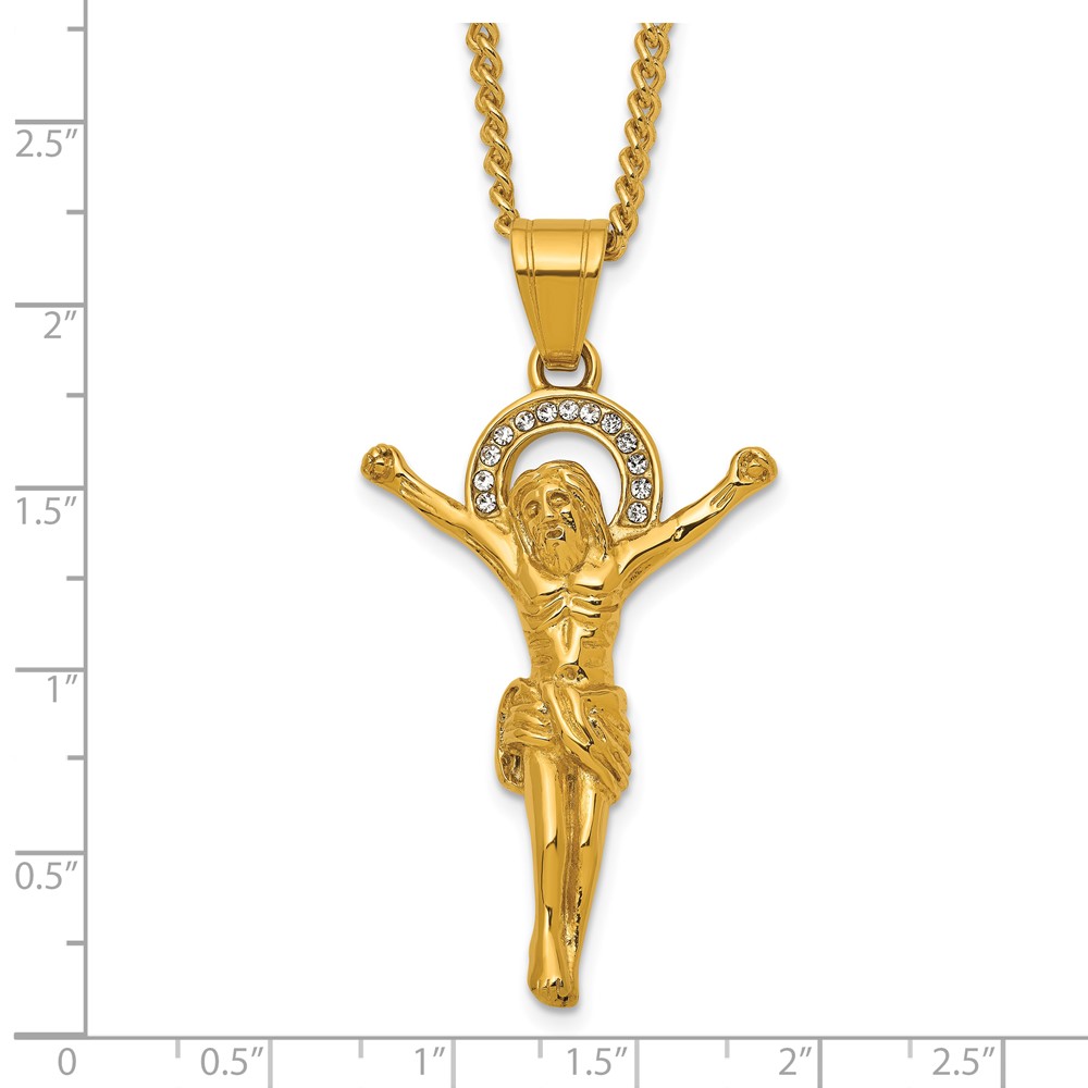 Stainless Steel Polished Yellow IP-plated Crystal Crucifix 24in Necklace