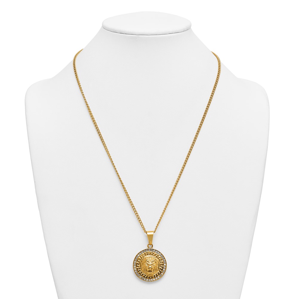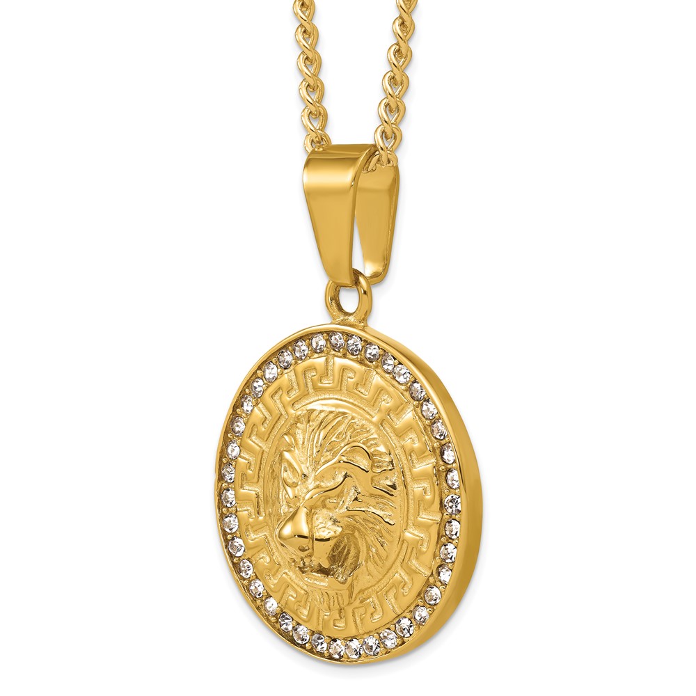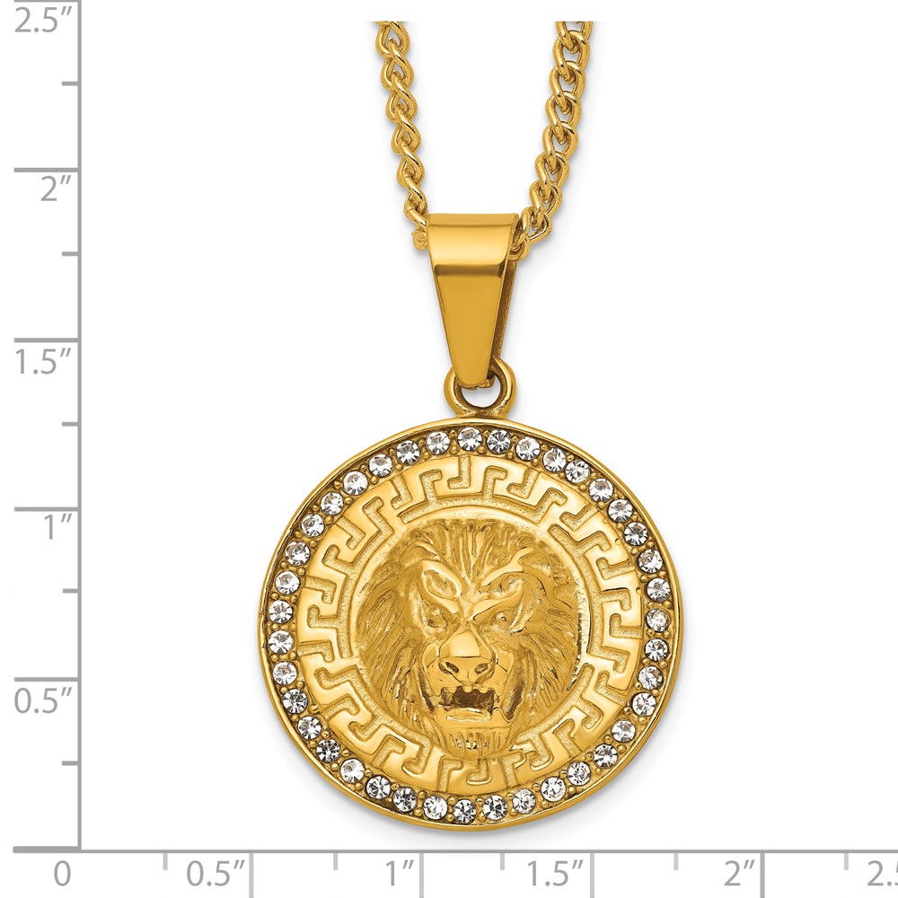 Stainless Steel Polished Yellow IP-plated Crystal Lion 24in Necklace