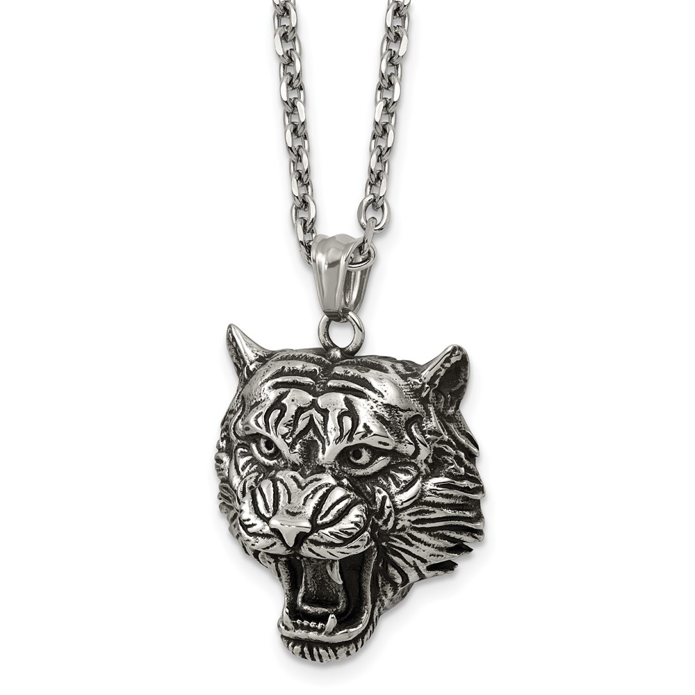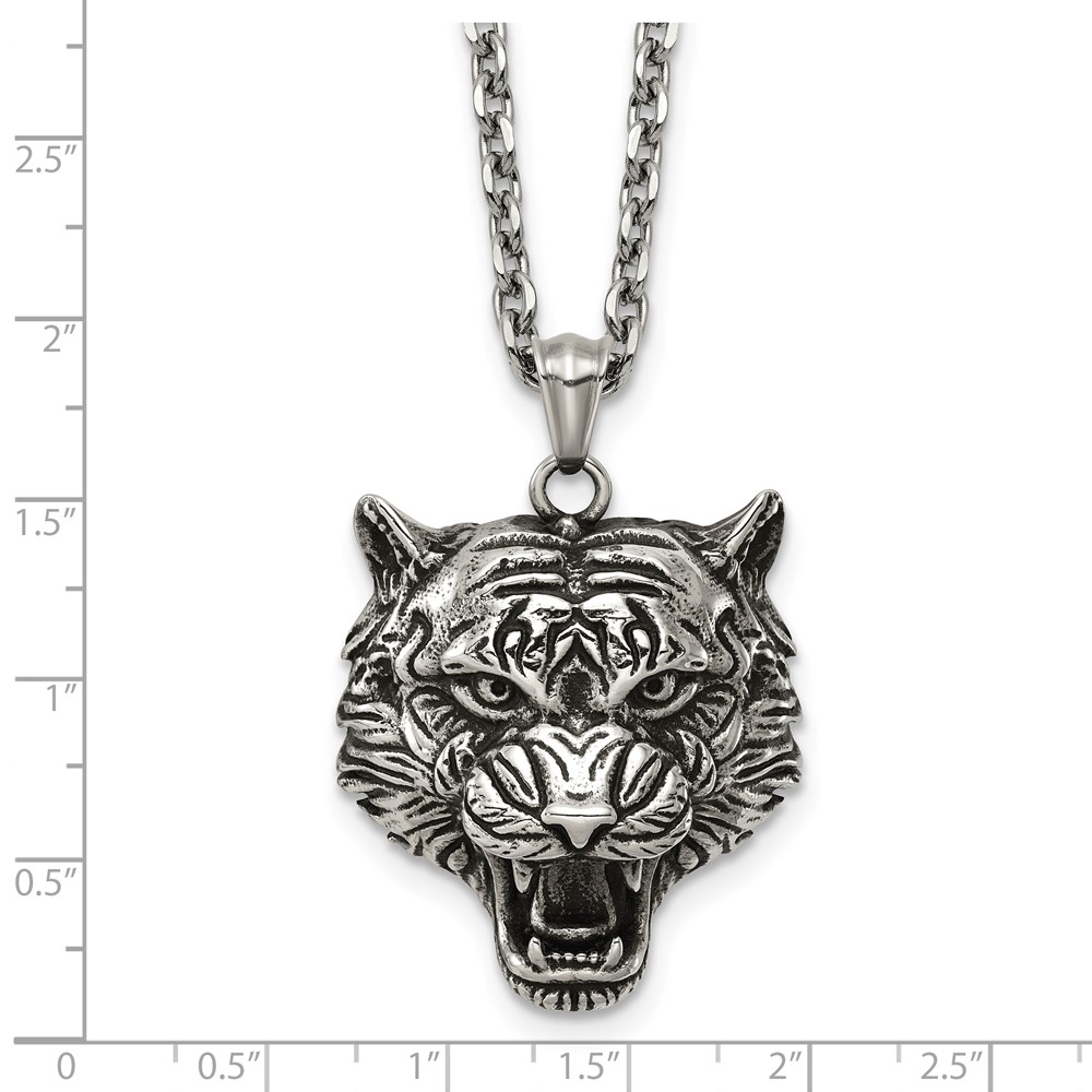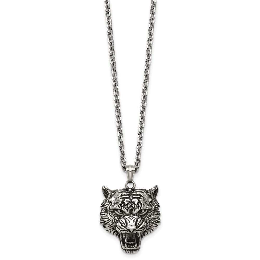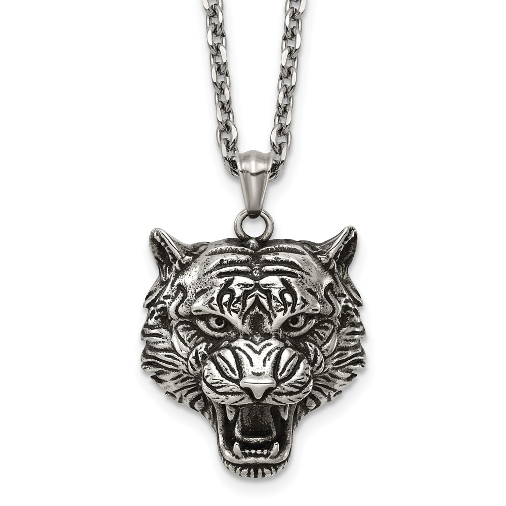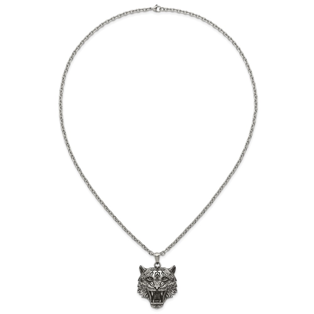 Stainless Steel Antiqued and Polished Tiger's Head 24in Necklace