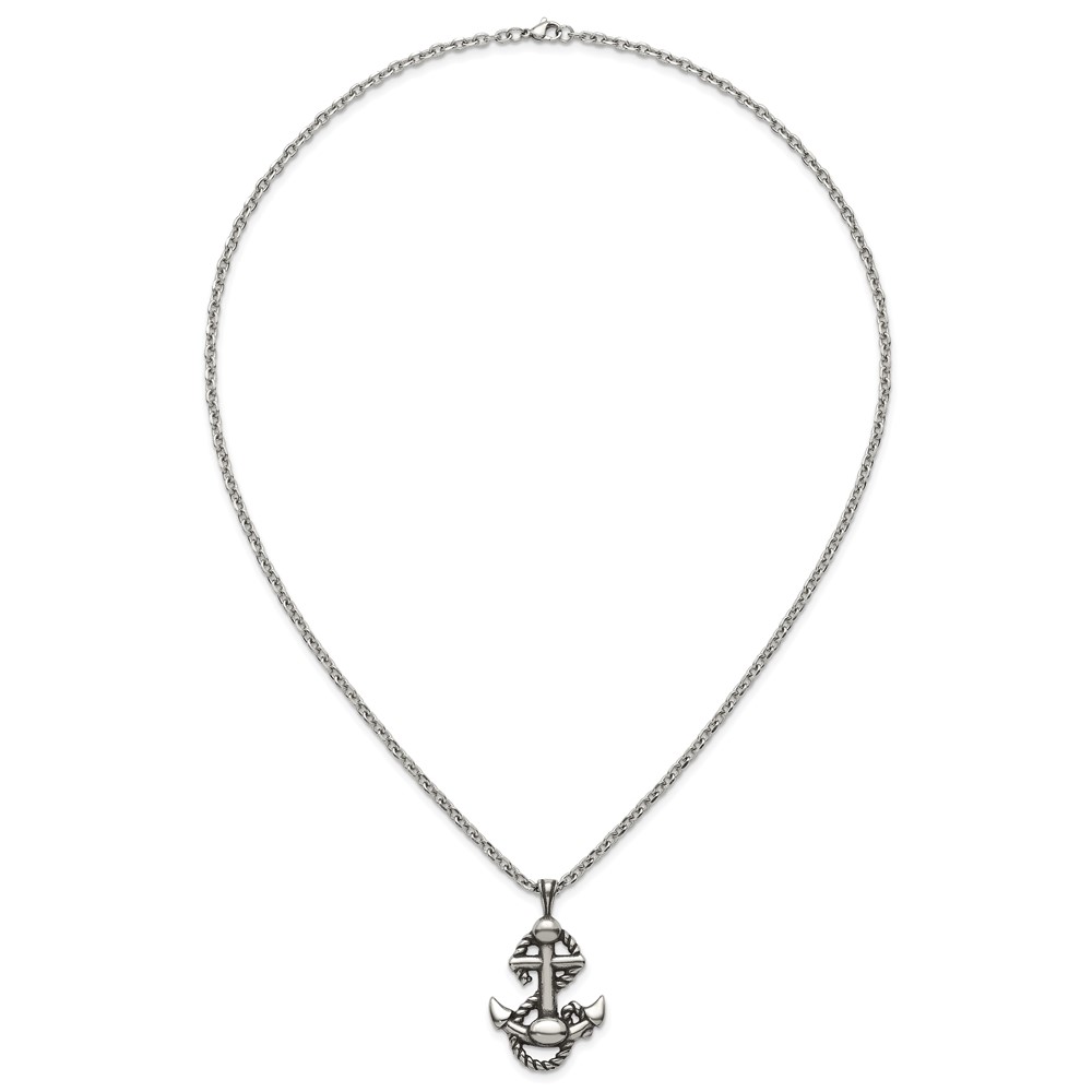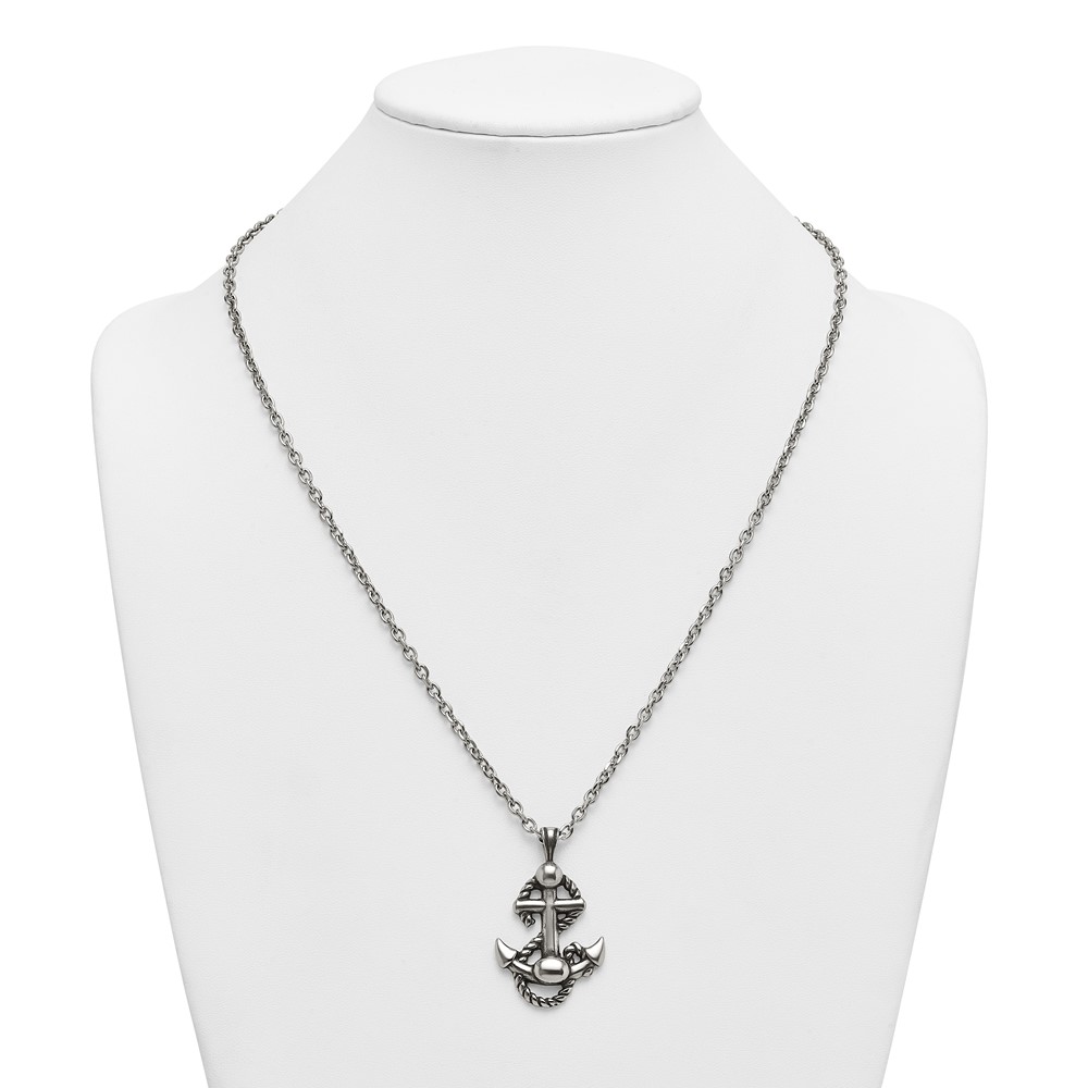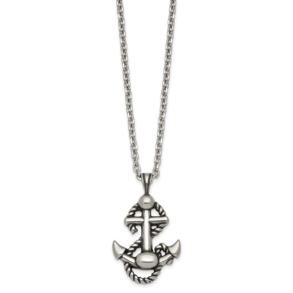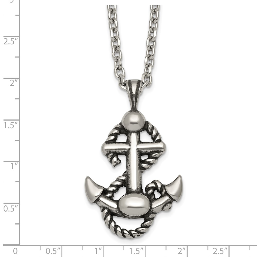 Stainless Steel Antiqued and Polished Anchor with Rope 24in Necklace