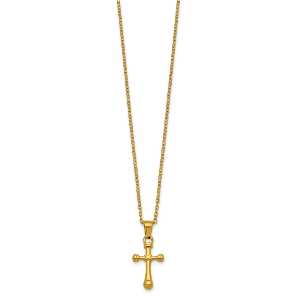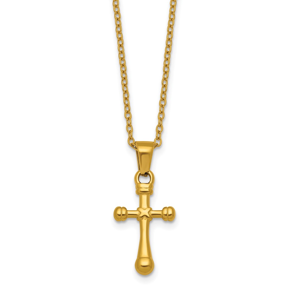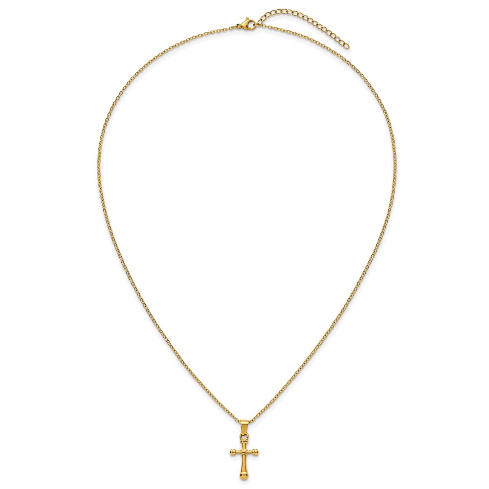 Stainless Steel Polished Yellow IP-plated 20 in w/2 in ext. Cross Necklace