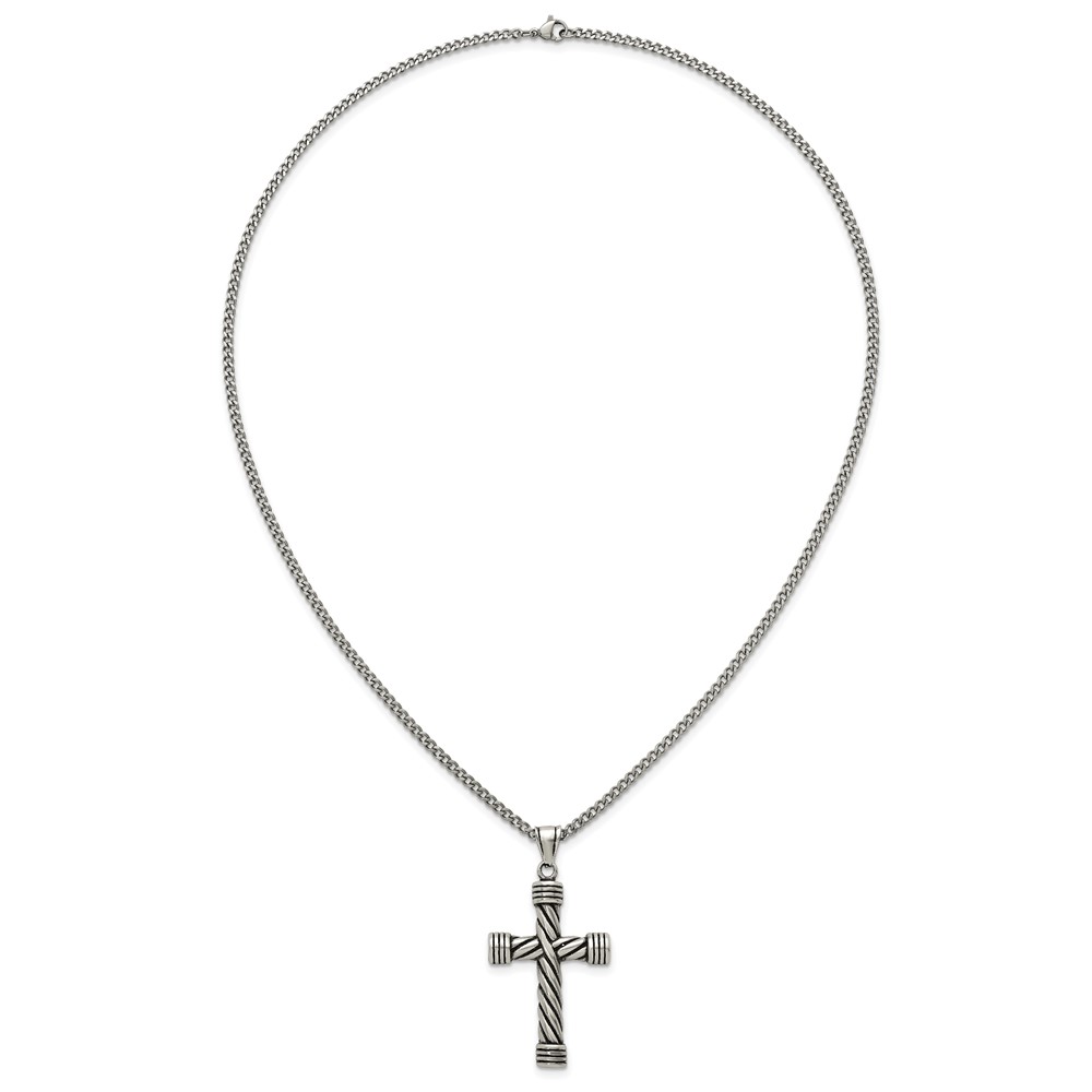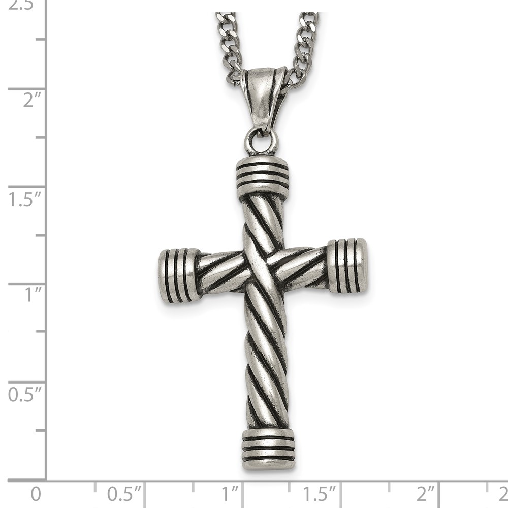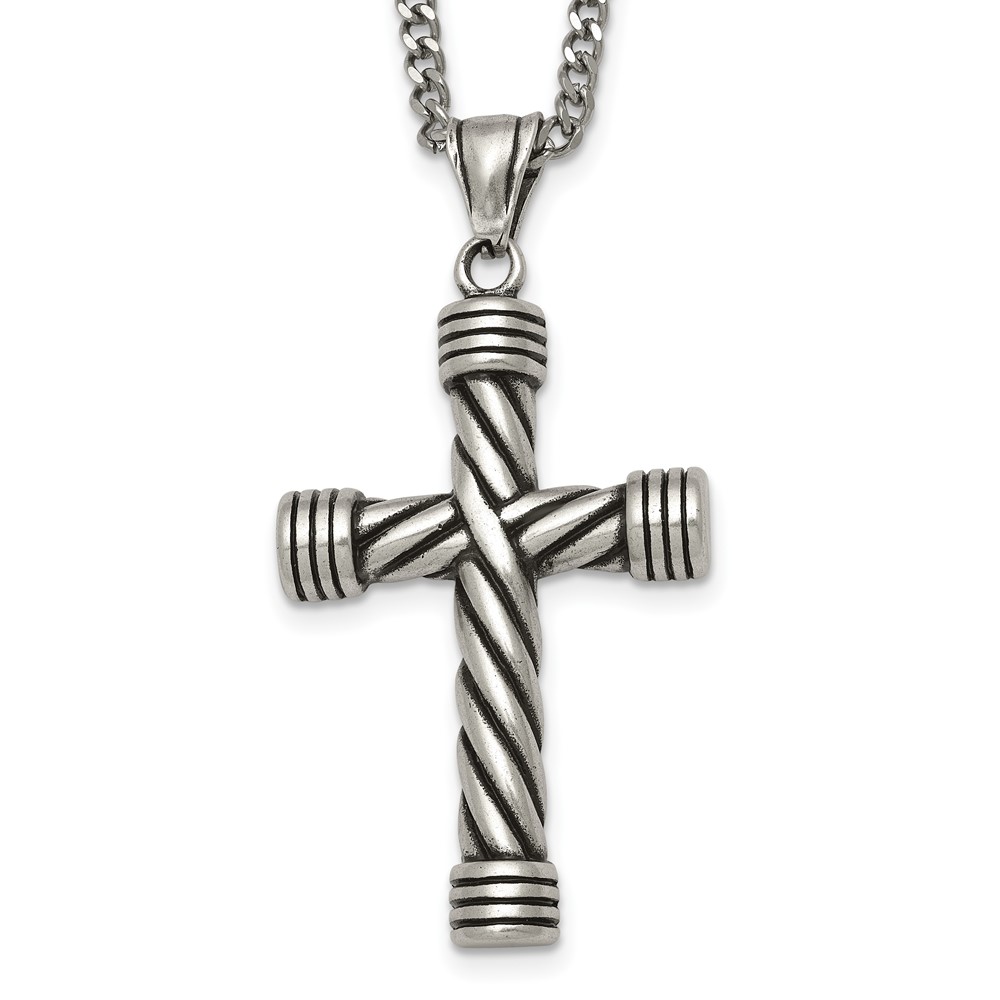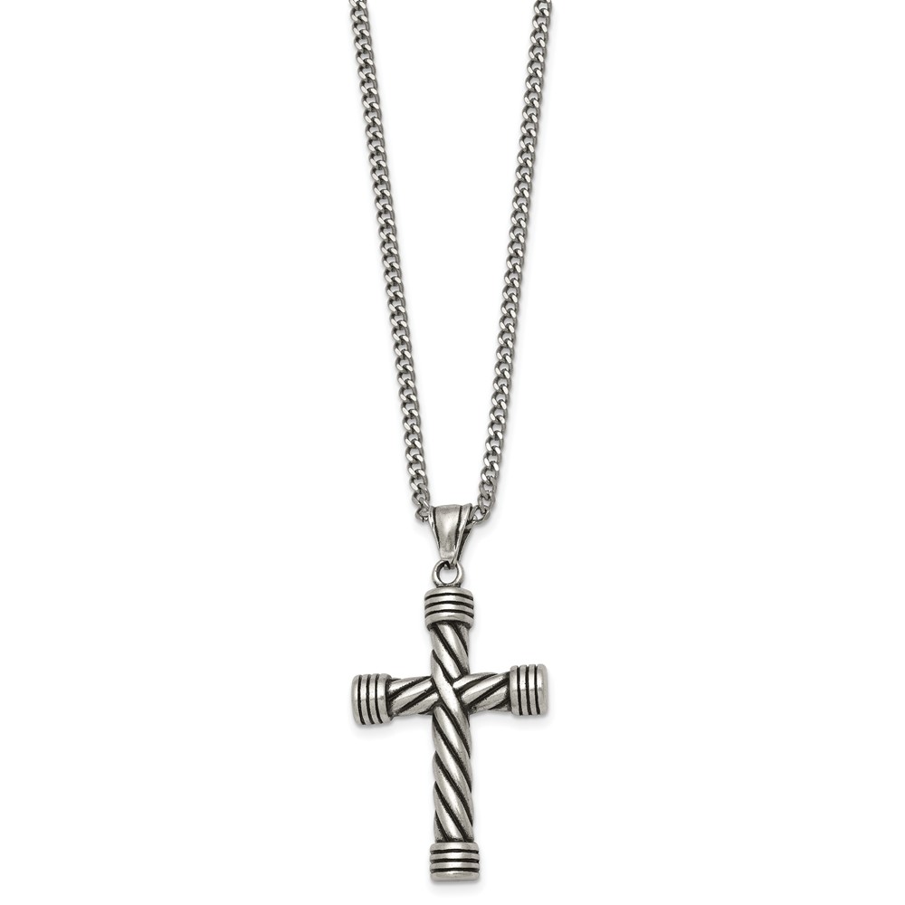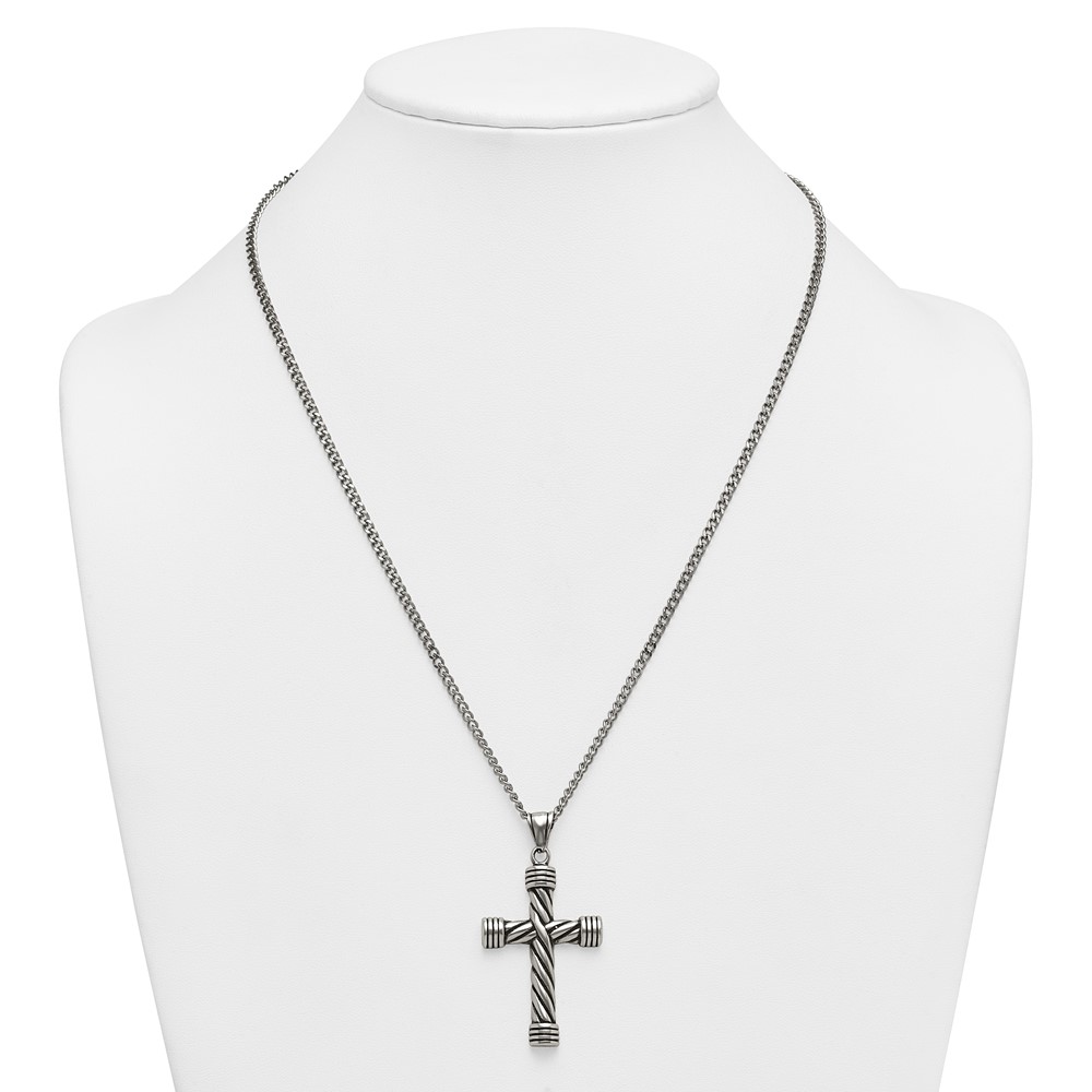 Stainless Steel Polished and Antiqued Weaved Cross 22in Necklace