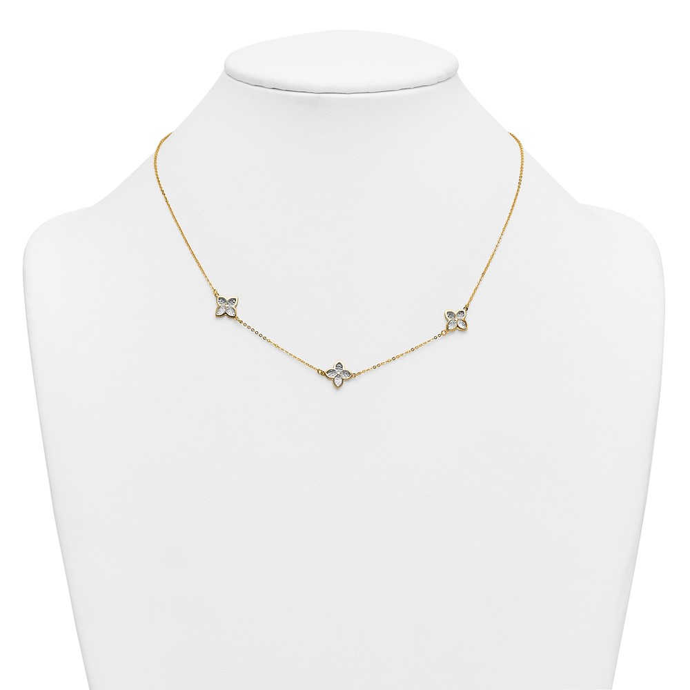 Leslie's 14K Polished w/White Rhodium D/C Clover Station Necklace