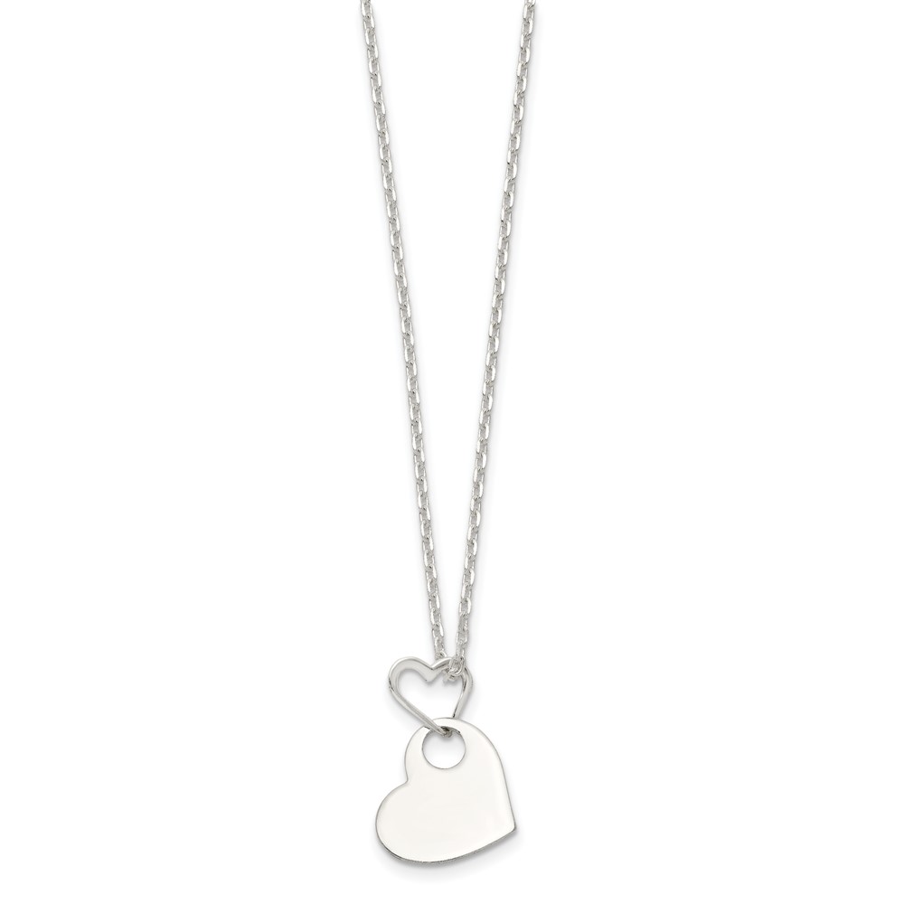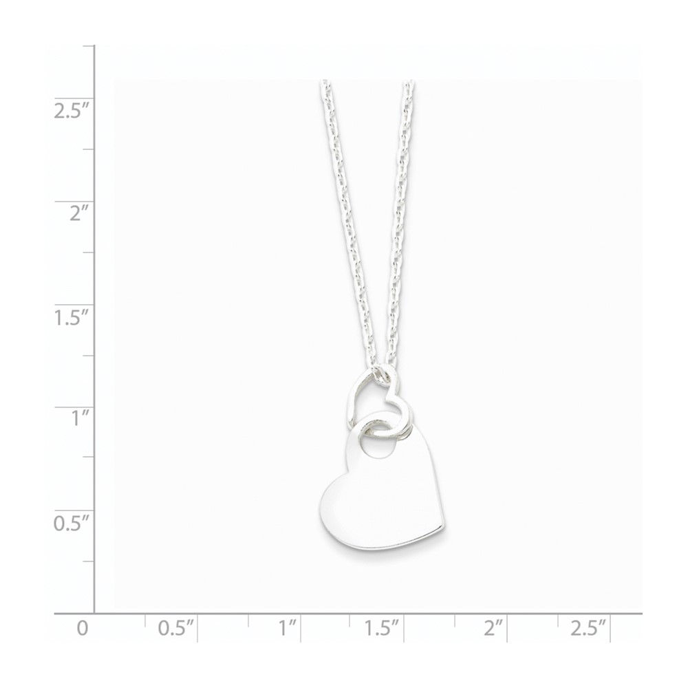Sterling Silver Open Heart Holding A Heart Dangle 16 inch Necklace
