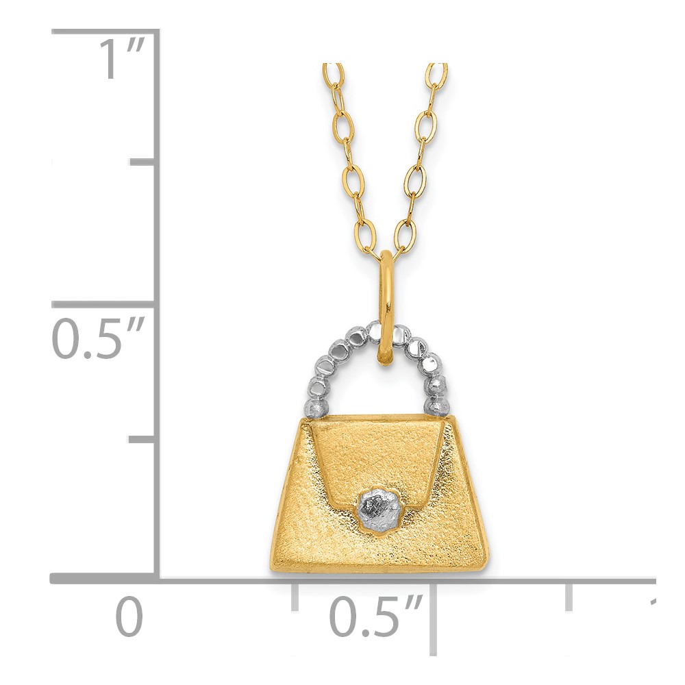 14k w/ White Rhodium Children's Polished & Textured Purse Necklace
