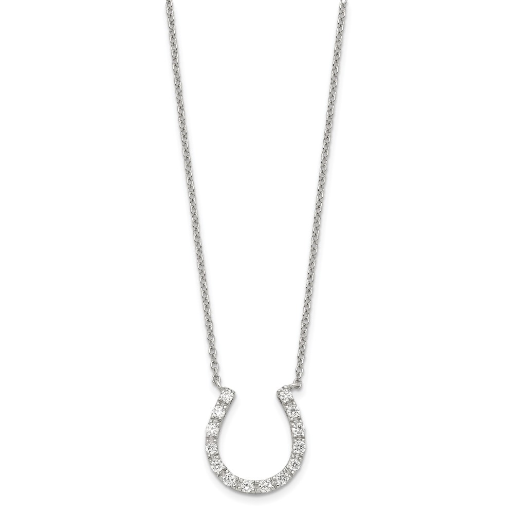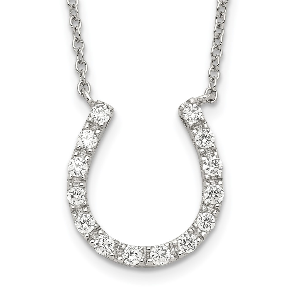 Sterling Silver Rhodium-plated CZ Horseshoe Necklace