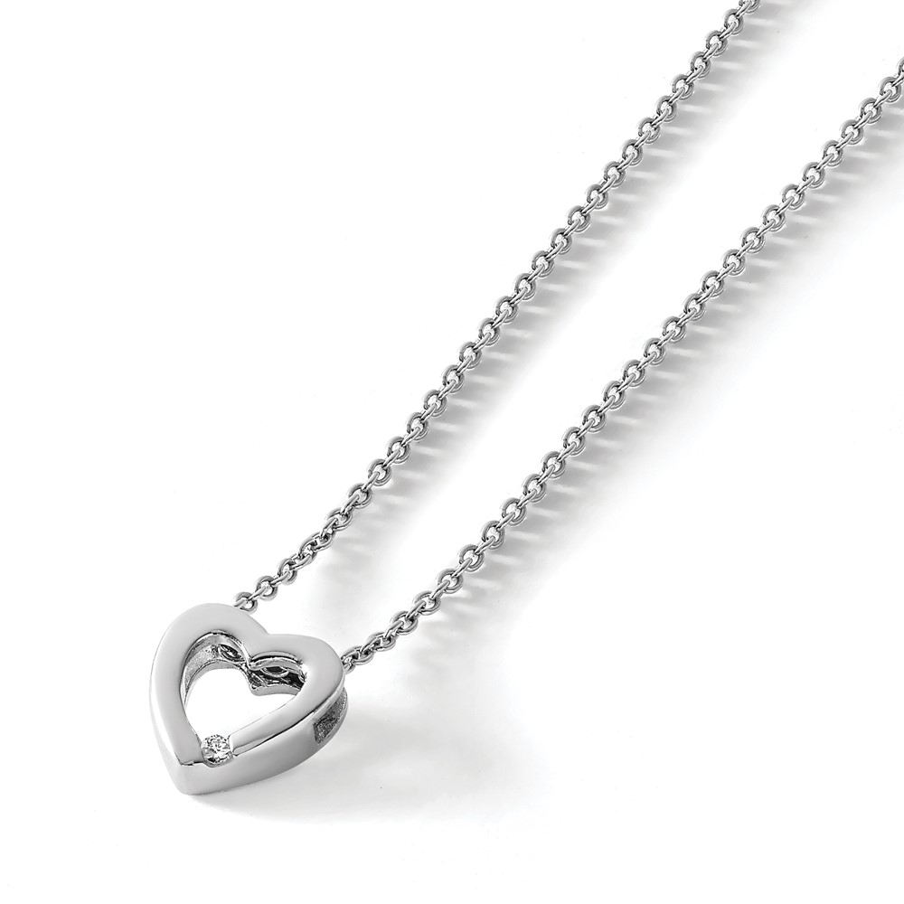White Ice Sterling Silver Rhodium-plated Diamond 18 Inch Heart Necklace with 2 Inch Extender