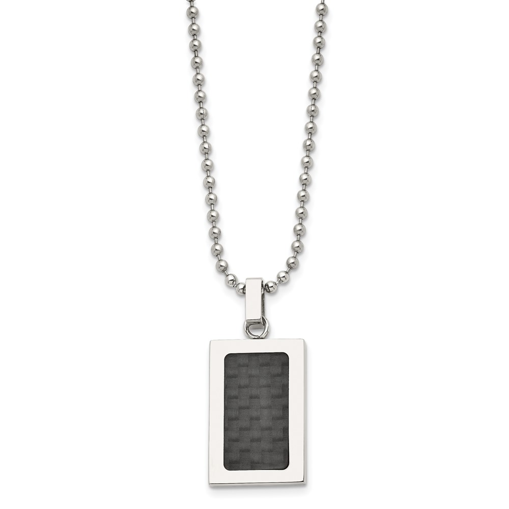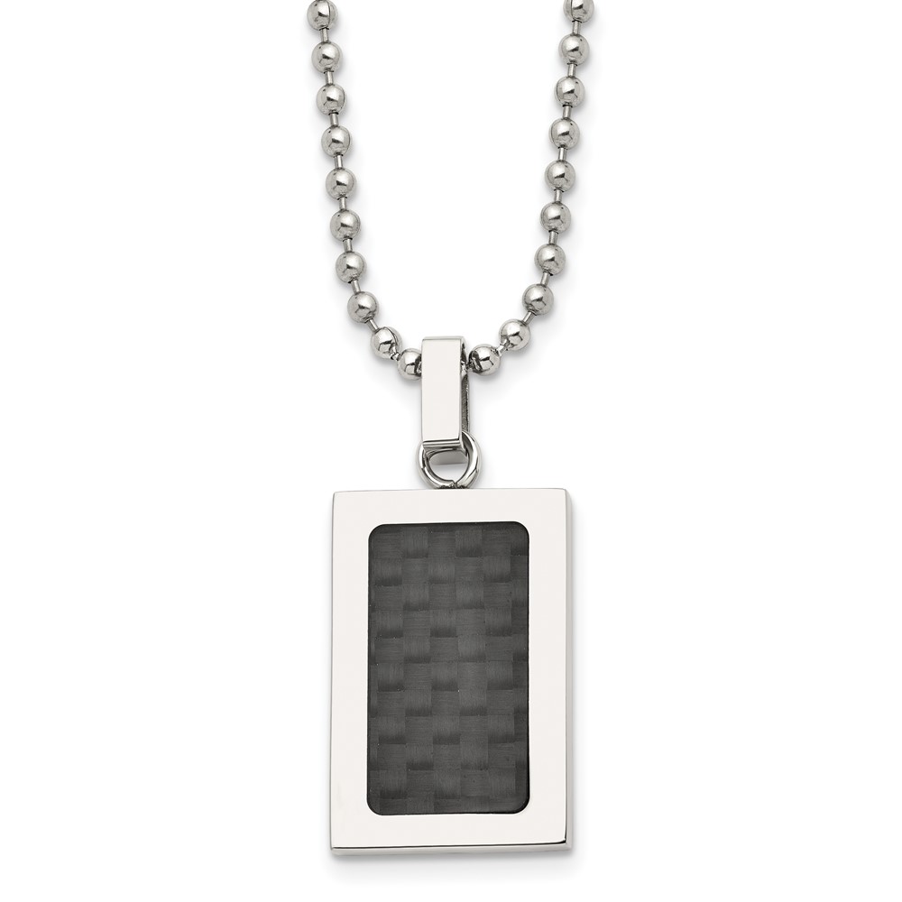 Stainless Steel 22in Polished w/Black Carbon Fiber Inlay Rectangle Necklac
