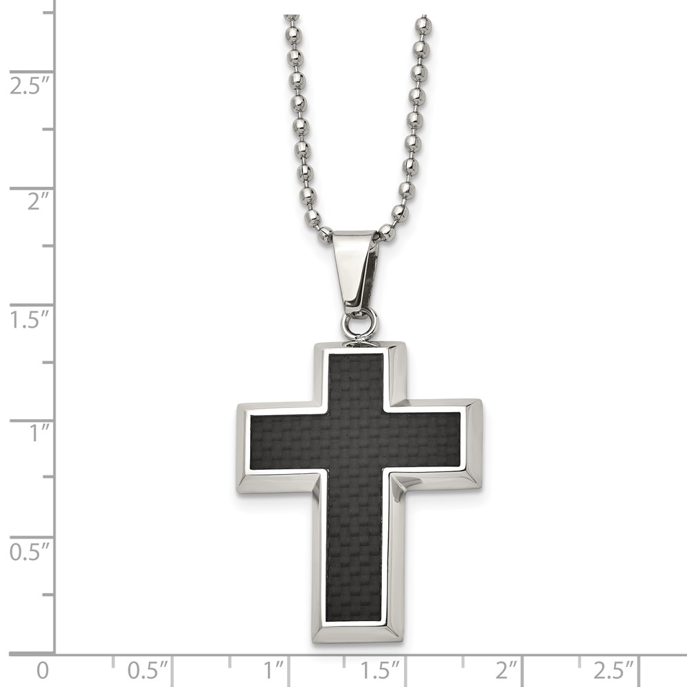 Chisel Stainless Steel Polished with Black Carbon Fiber Inlay Cross Pendant on a 22 inch Ball Chain Necklace