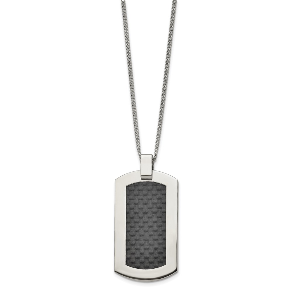 Chisel Titanium Polished with Black Carbon Fiber Inlay 24 inch Necklace
