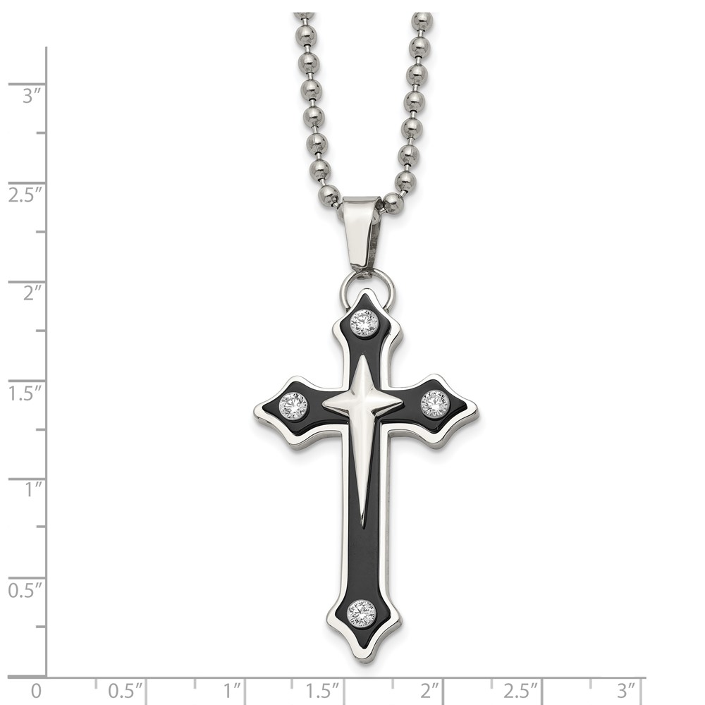 Chisel Stainless Steel Polished Black IP-plated with CZ Cross Pendant on a 20 inch Ball Chain Necklace