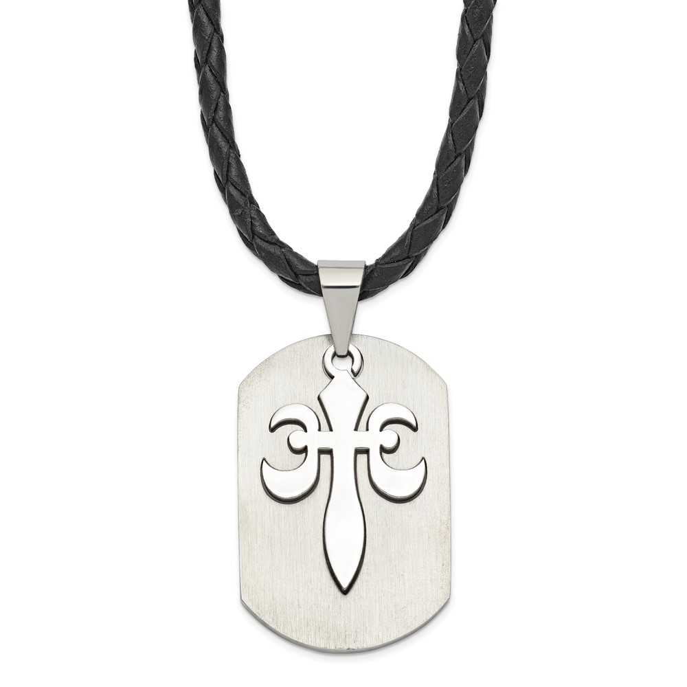 Stainless Steel Fleur de Lis Cut-out Dog Tag Necklace