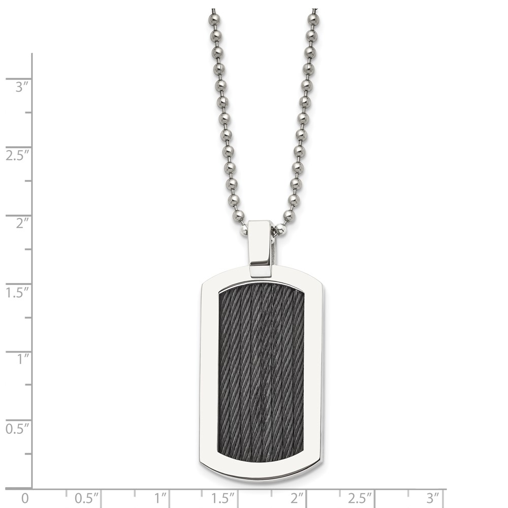 Chisel Stainless Steel Polished with Black IP-Plated Cable Dog Tag on a 24 inch Ball Chain Necklace