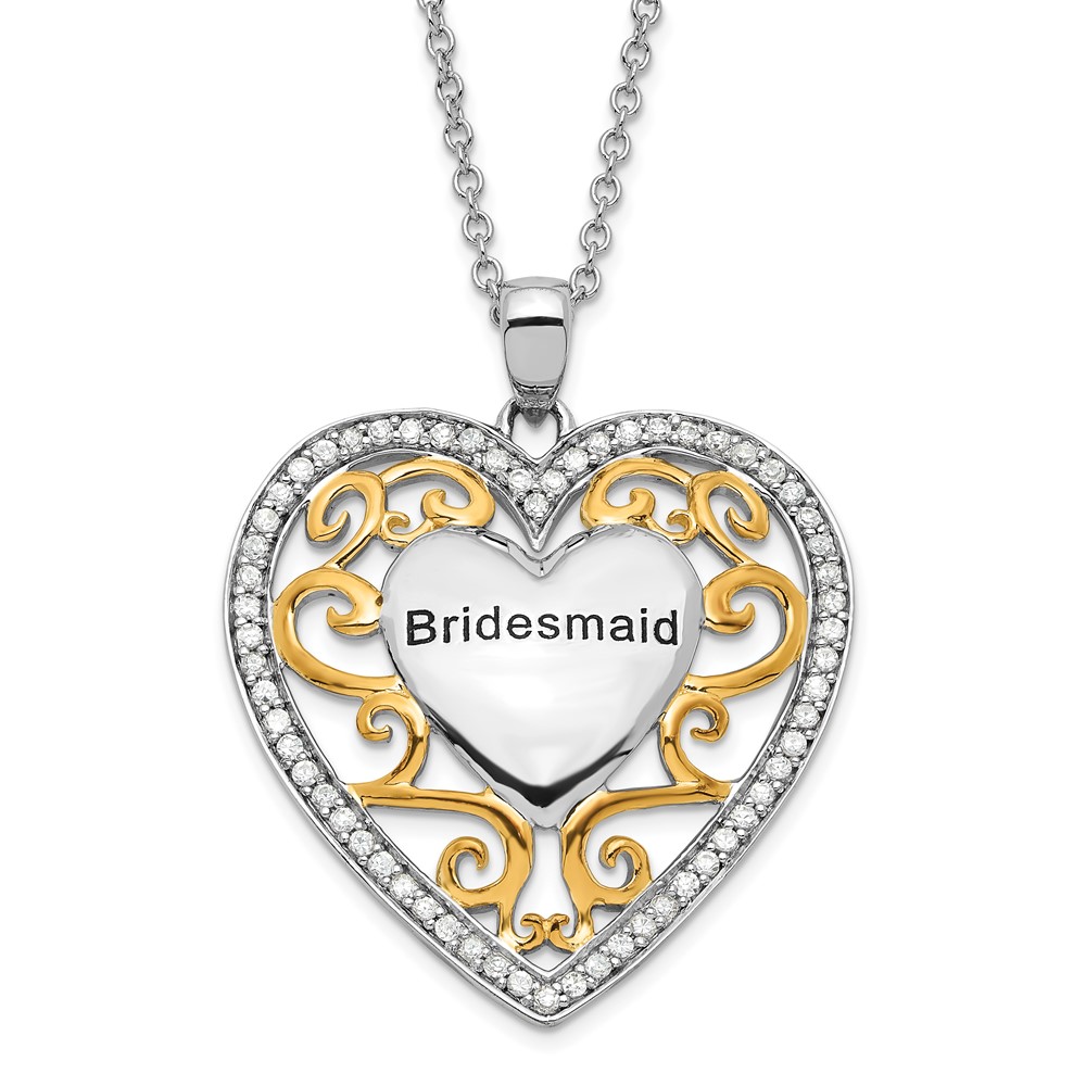 Sentimental Expressions Sterling Silver & Gold-plated Polished & Antiqued CZ Bridesmaid Heart Necklace