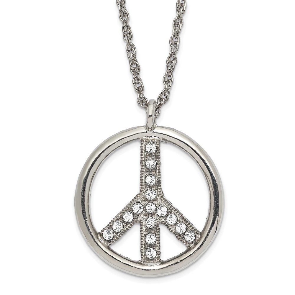1928 Jewelry Silver-tone Clear Crystal Peace Symbol with 3 inch extension Necklace