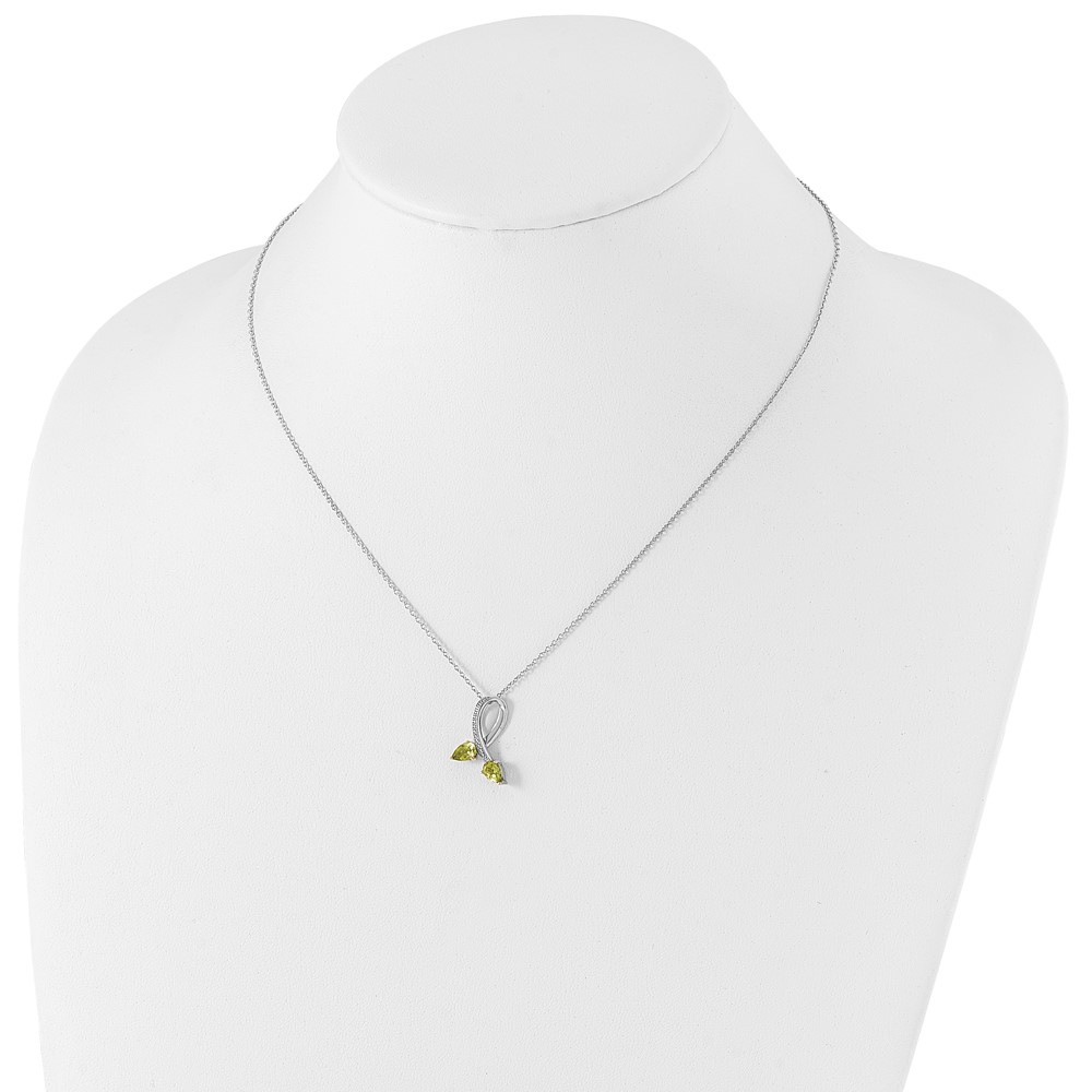 Brilliant Gemstones Sterling Silver with 14K Accent Rhodium-plated Peridot and Diamond 18 Inch Necklace with 2 Inch Extender