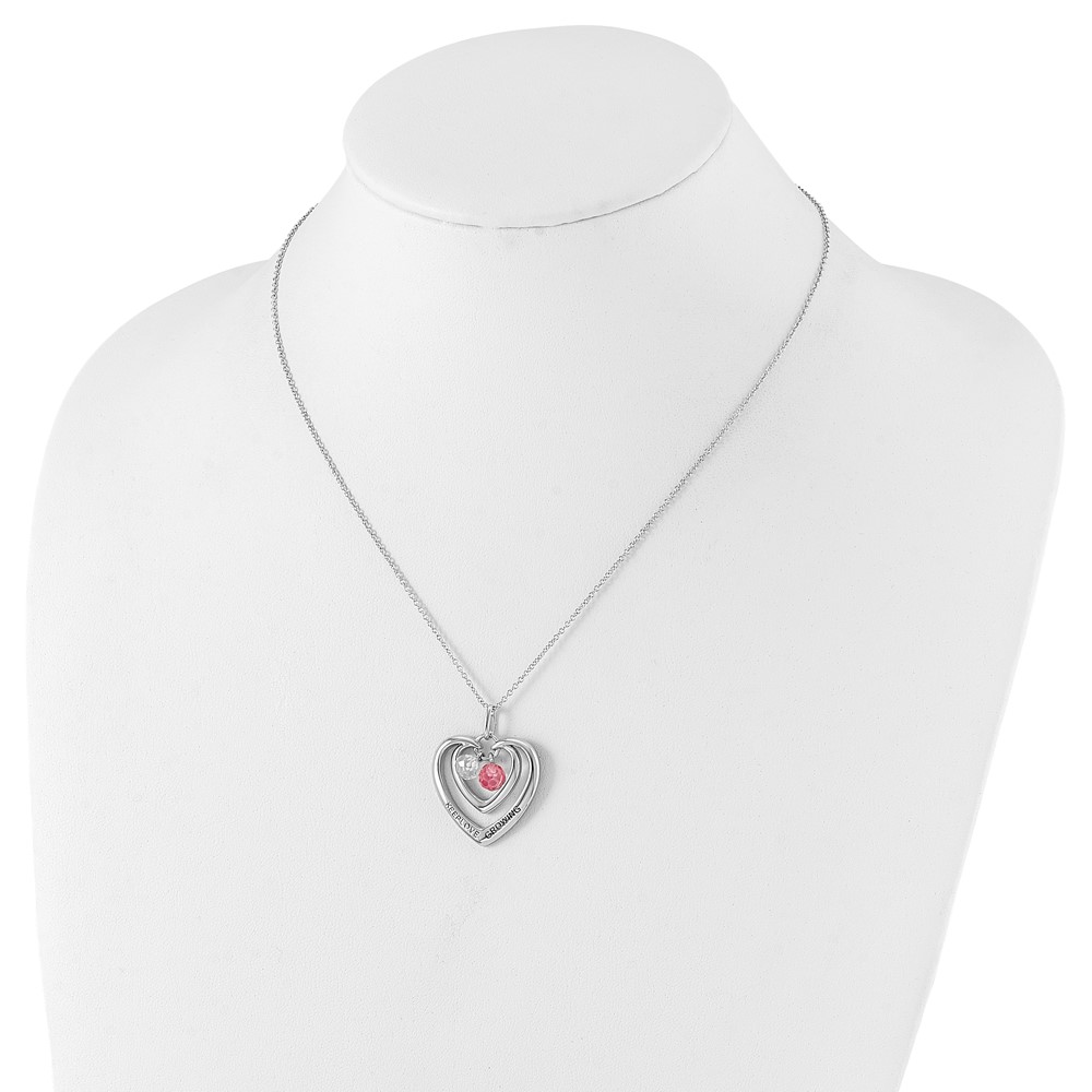 Sentimental Expressions Sterling Silver Polished & Antiqued Pink & Clear CZ Keep Love Growing Heart Necklace
