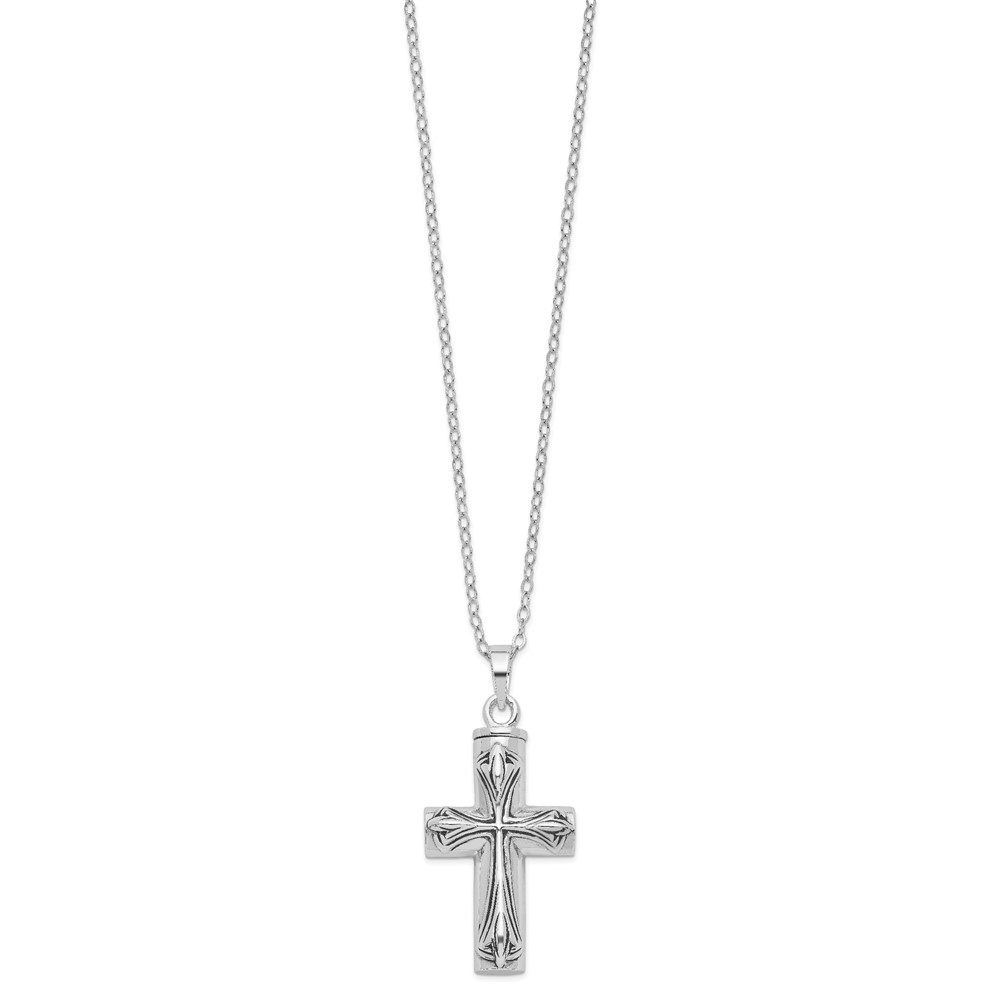 Sentimental Expressions Sterling Silver Rhodium-plated Antiqued Cross Ash Holder 18 Inch Necklace
