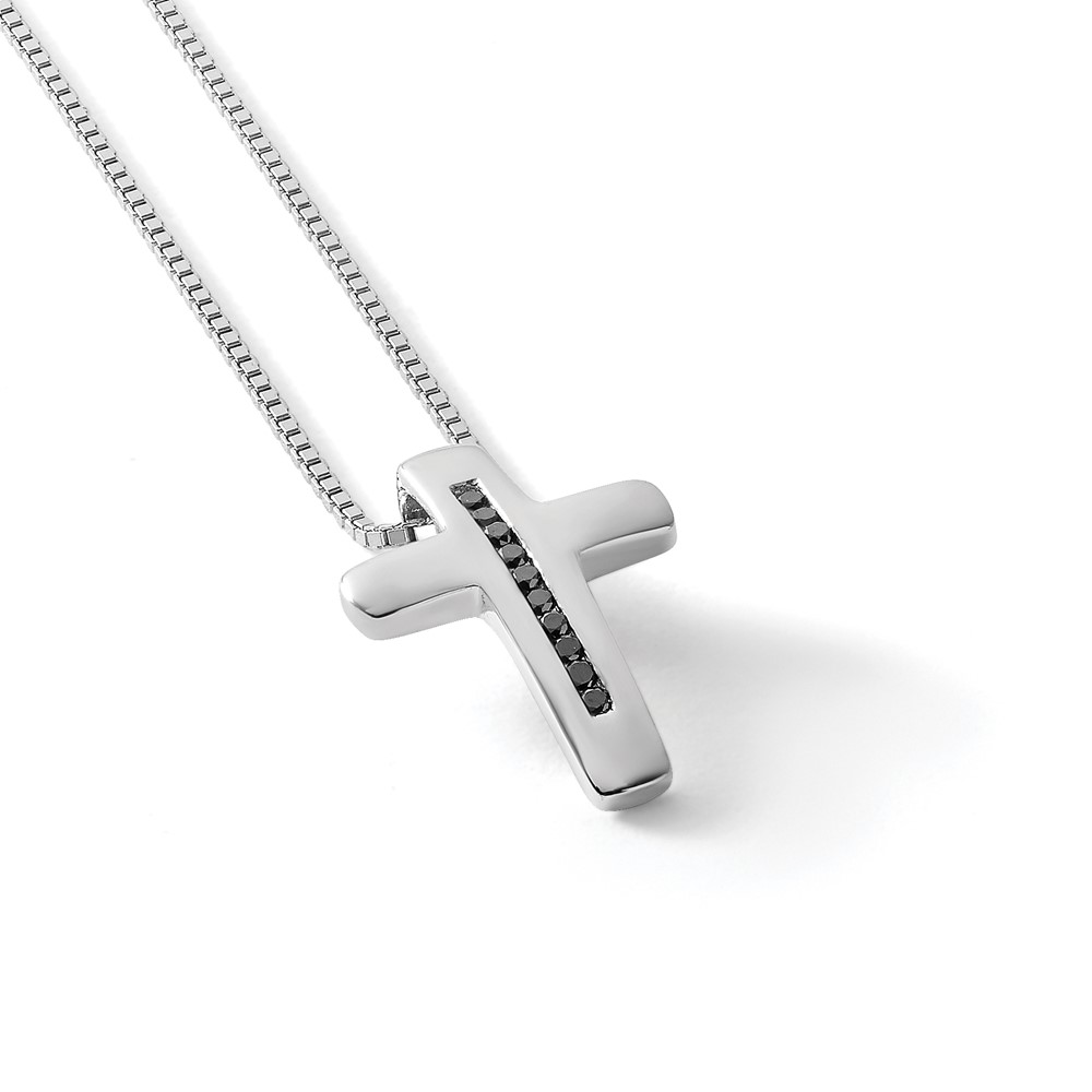 White Ice Sterling Silver Rhodium-plated 18 Inch Black Diamond Cross Necklace with 2 Inch Extender