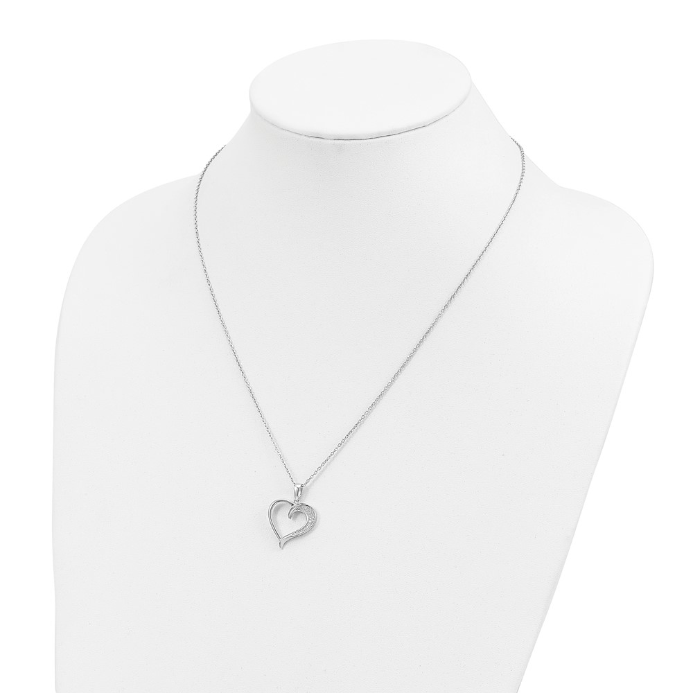Brilliant Embers Sterling Silver Rhodium-plated 21 Stone 18 inch Micro Pavé CZ Polished Heart Necklace with 2 Inch Extender