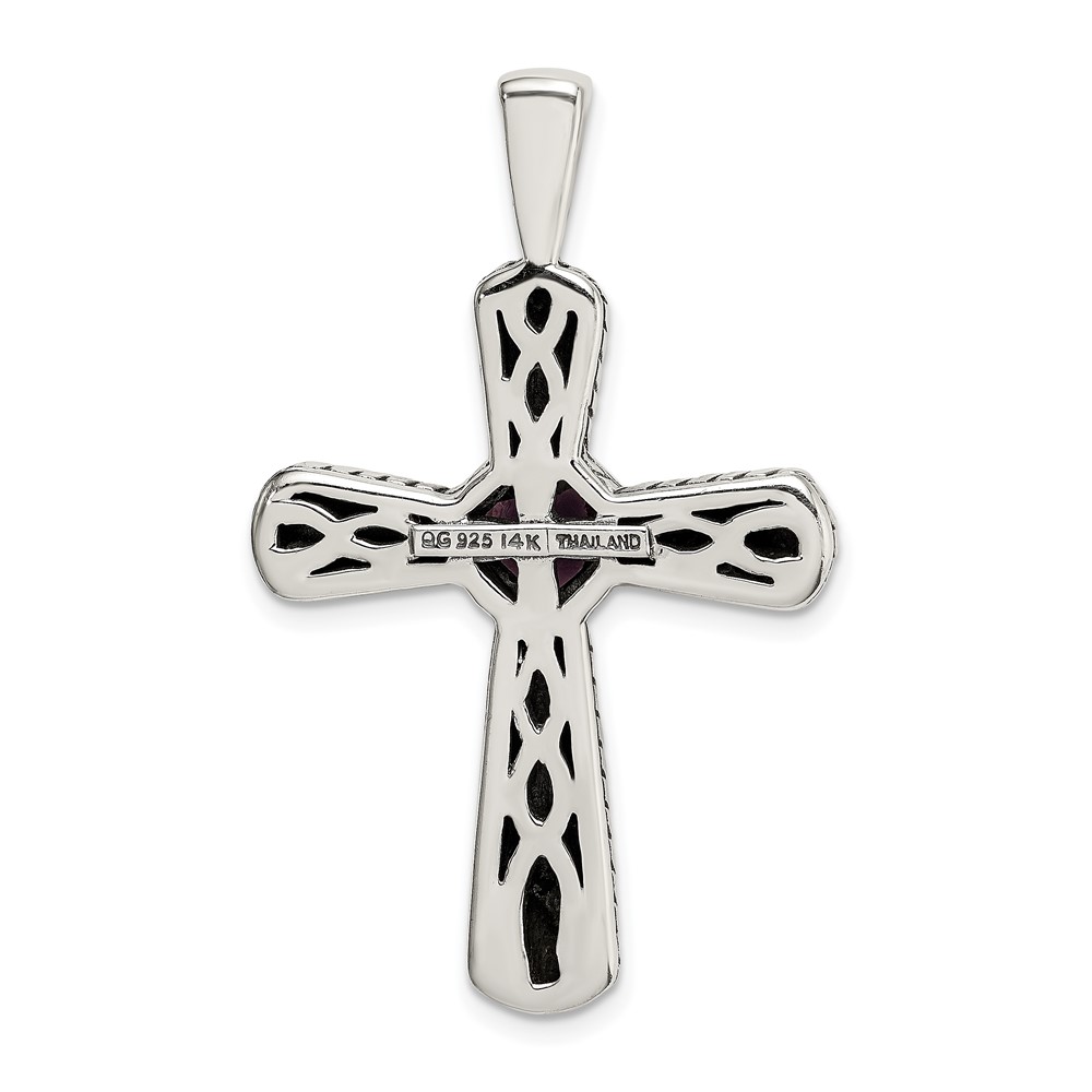 Shey Couture Sterling Silver with 14K Accent 18 Inch Antiqued Cushion Bezel Amethyst Cross Necklace