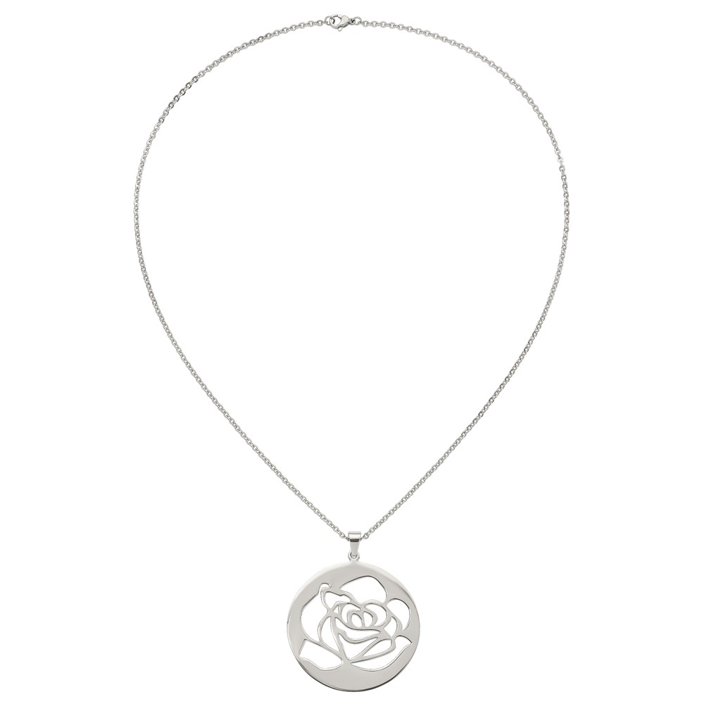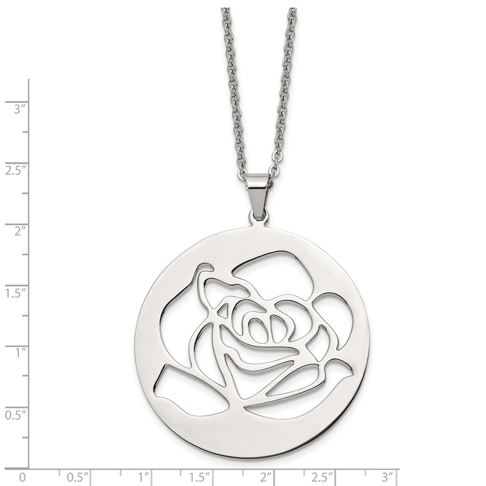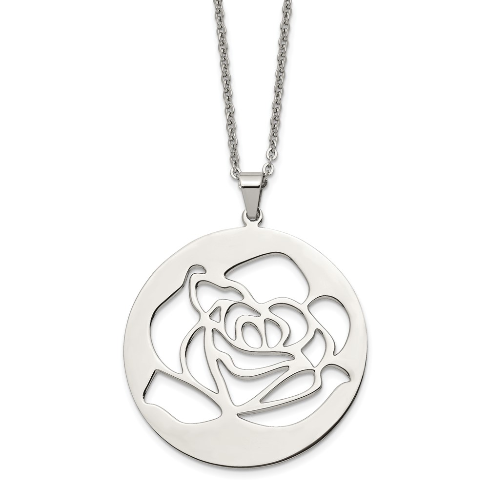 Stainless Steel Polished Rose Cut-out 22in Necklace