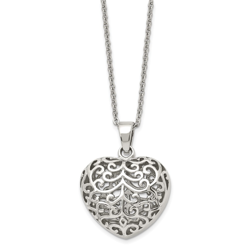 Chisel Stainless Steel Polished Filigree Puffed Heart Pendant on a 22 inch Cable Chain Necklace