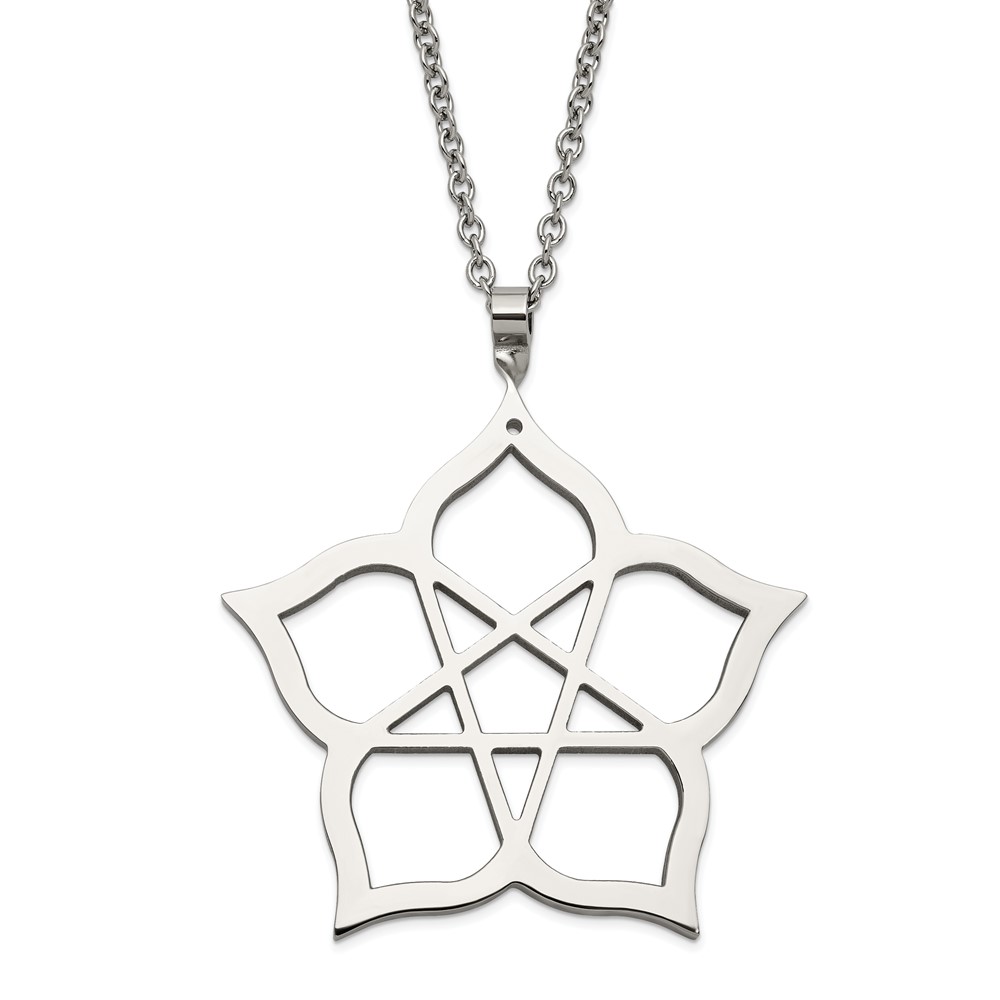 Stainless Steel Fancy Polished Flower 22in Necklace