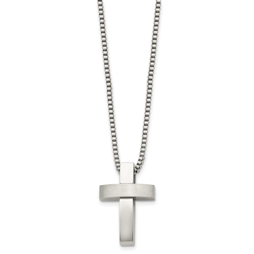Chisel Stainless Steel Brushed and Polished Cross Pendant on a 22 inch Box Chain Necklace