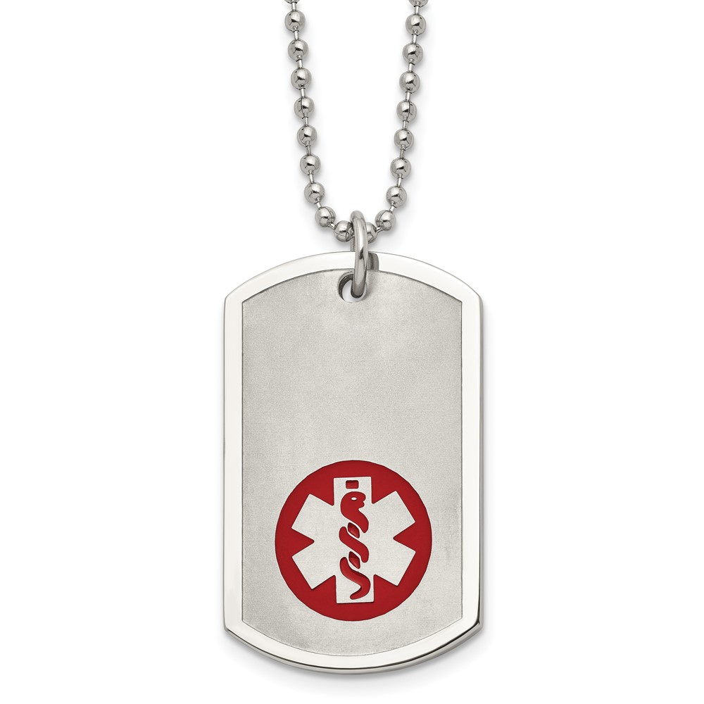 Chisel Stainless Steel Brushed and Polished with Red Enamel Medical ID Dog Tag on a 22 inch Ball Chain Necklace