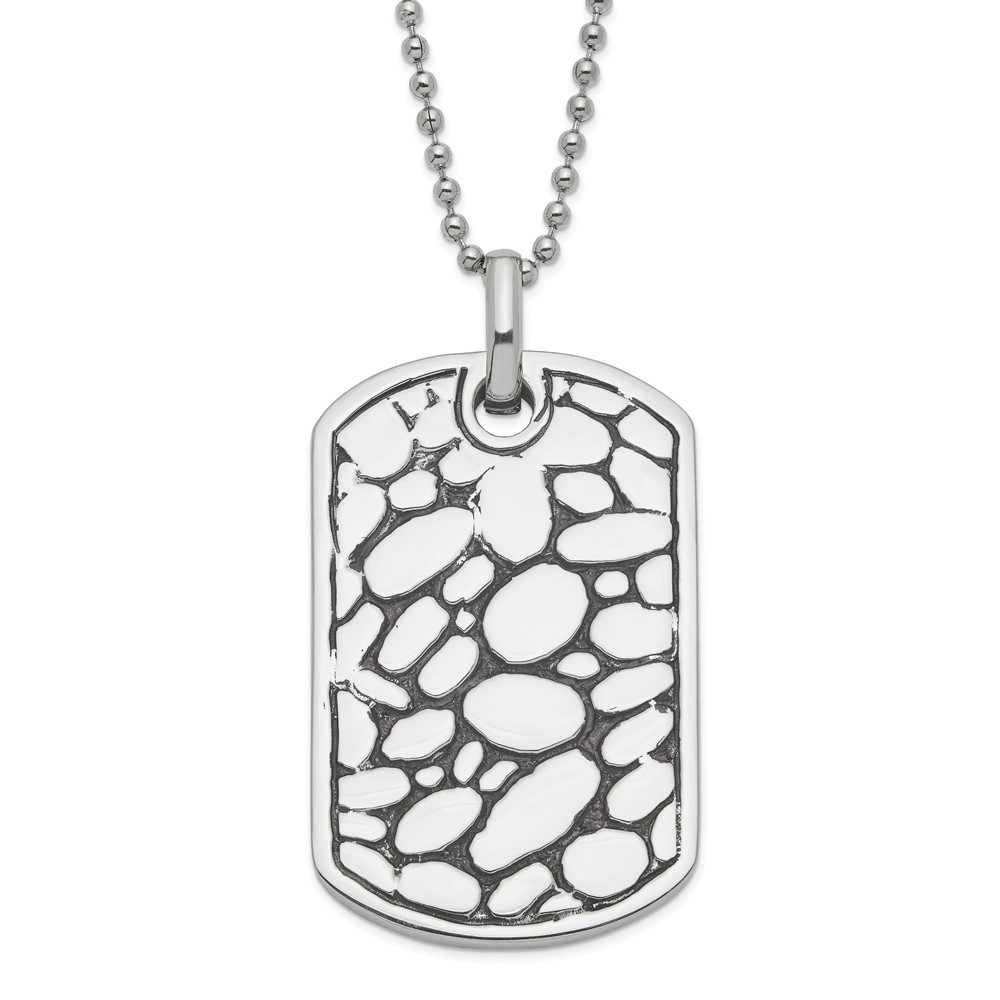Stainless Steel Black Enamel Pebble Dog Tag Necklace