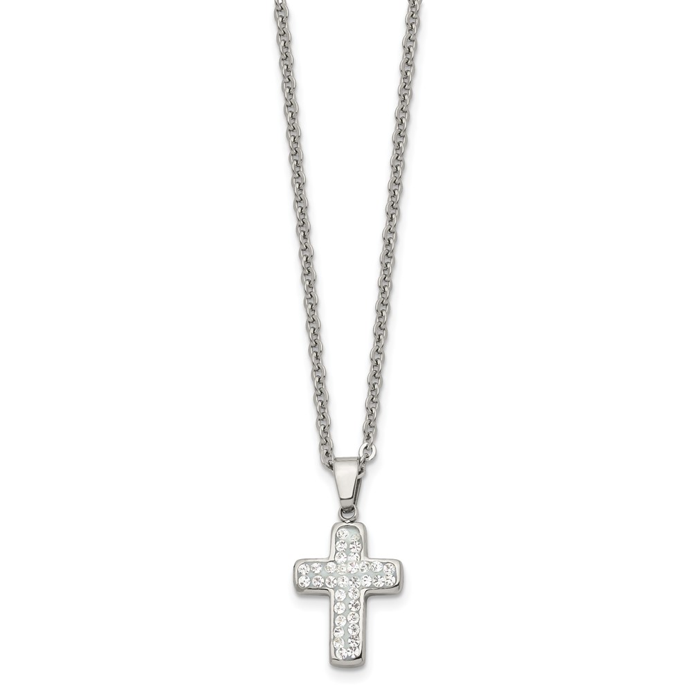 Chisel Stainless Steel Polished Crystal Cross Pendant on a 22 inch Cable Chain Necklace