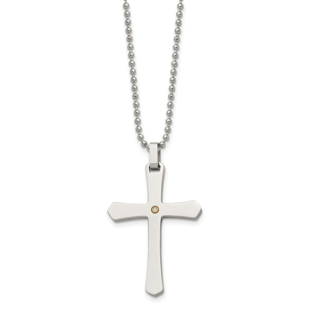 Chisel Stainless Steel Polished with 14k Gold Accent .02 carat Diamond Cross Pendant on a 22 inch Ball Chain Necklace