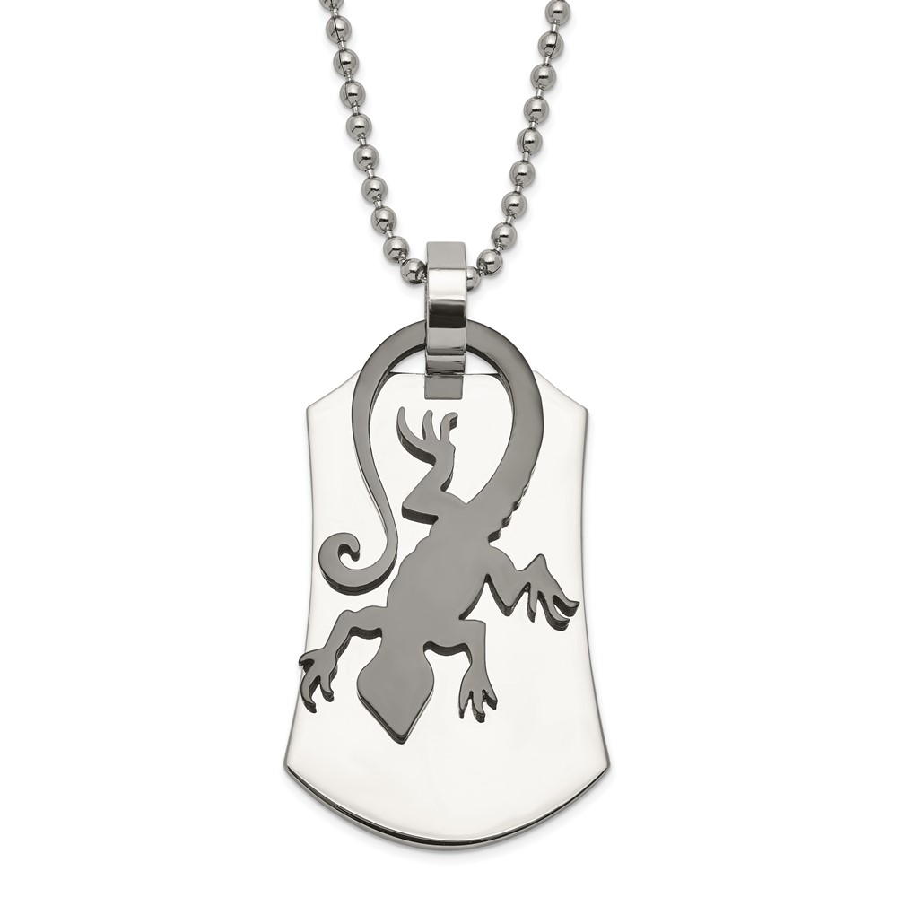 Stainless Steel Polished & Black Enamel Lizard Necklace