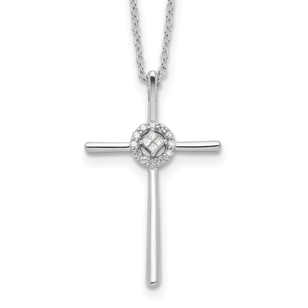 Sterling Silver Diamond Rhodium-plated Eternal Life Cross Necklace