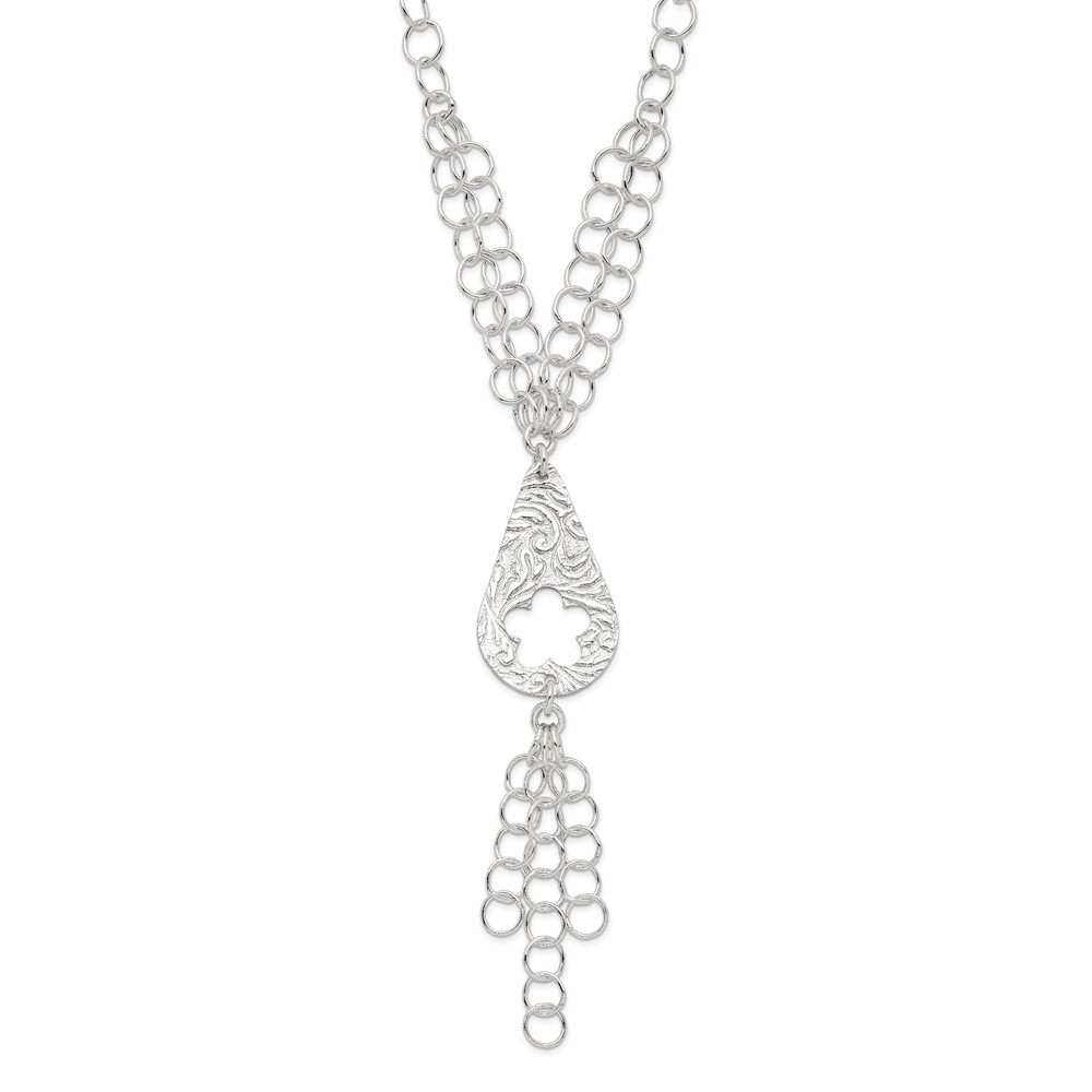 Sterling Silver Polished & Textured Floral Teardrop Necklace