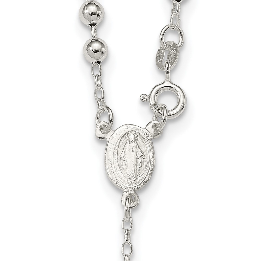Sterling Silver Polished Bead 18 inch Rosary Necklace