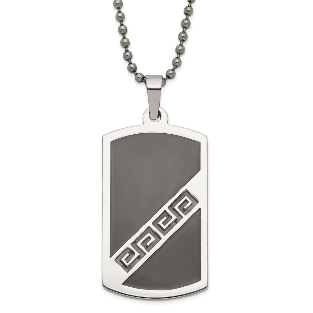 Stainless Steel Black Enamel Greek Key Dog Tag Pendant Necklace