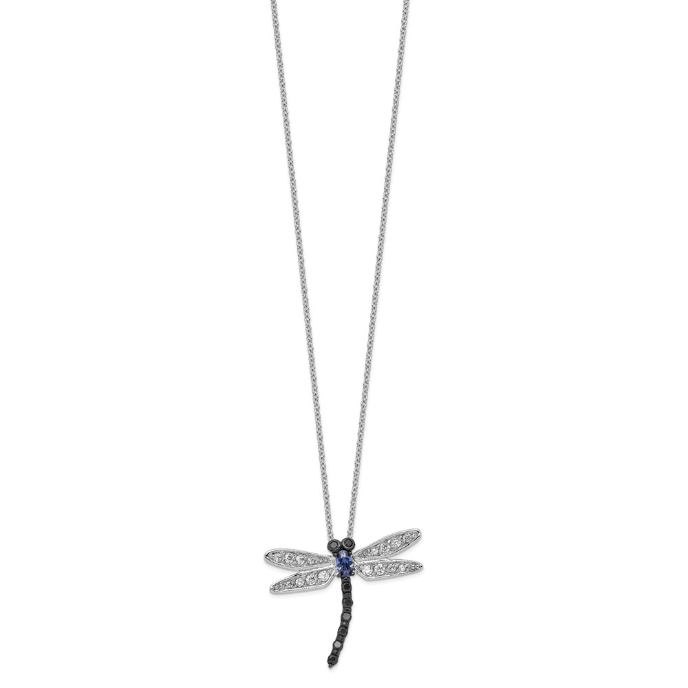 Cheryl M Sterling Silver Rhodium-plated with Black Rhodium Accent Brilliant-cut Black White and Blue CZ Dragonfly 18 Inch Necklace