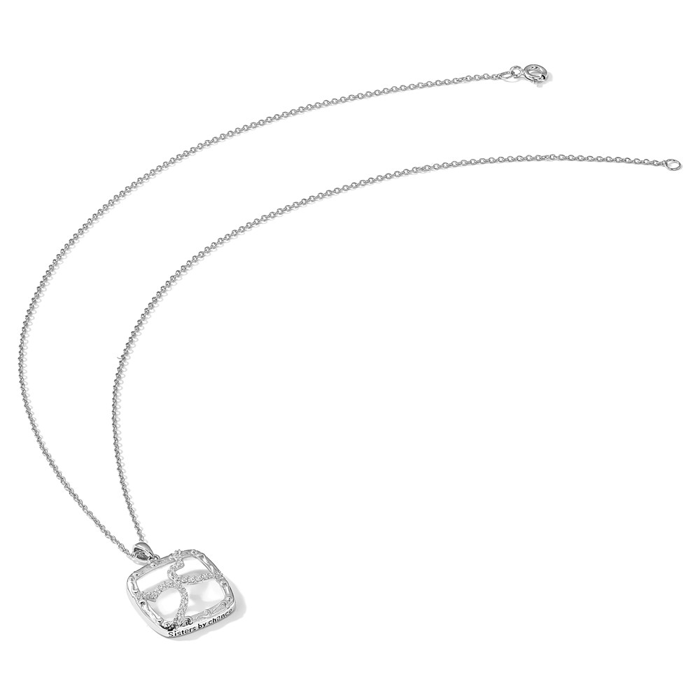 Sentimental Expressions Sterling Silver Rhodium-plated Antiqued CZ Sisters By Chance 18in Hearts Necklace